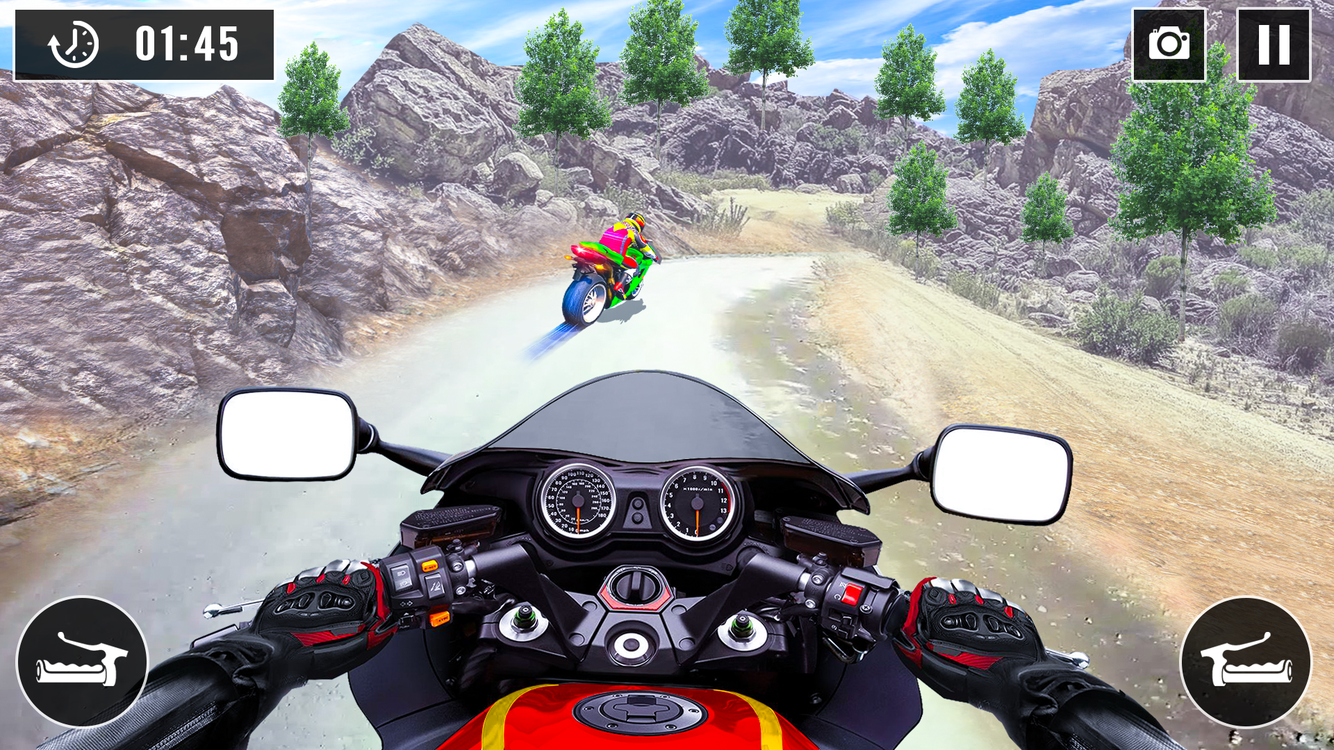 Players traverse challenging terrains at high speeds, mastering the balance and velocity of their bikes.