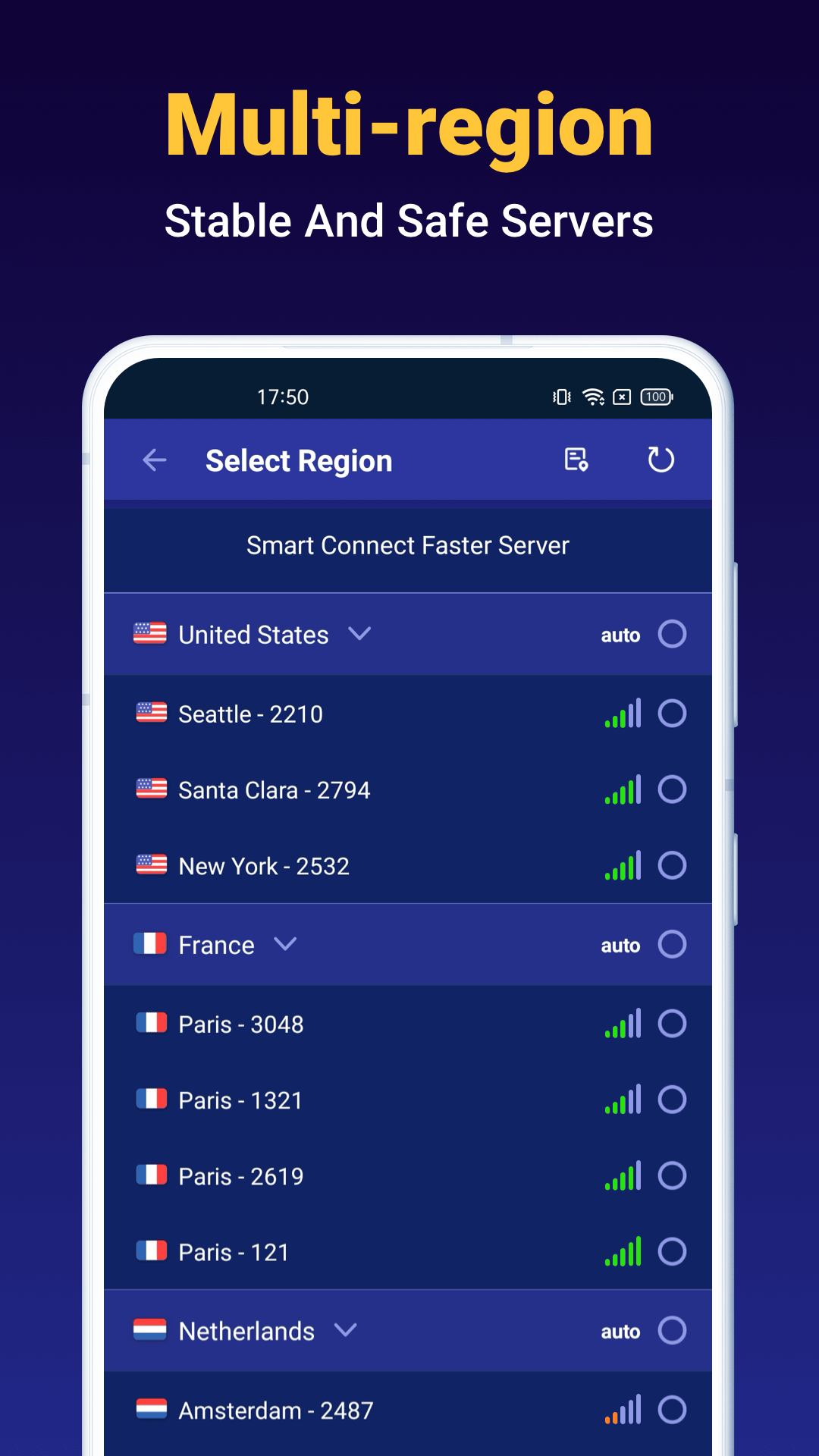Choose your server manually or let the app automatically select one that fits your current needs, all initiated in just a few effortless steps.