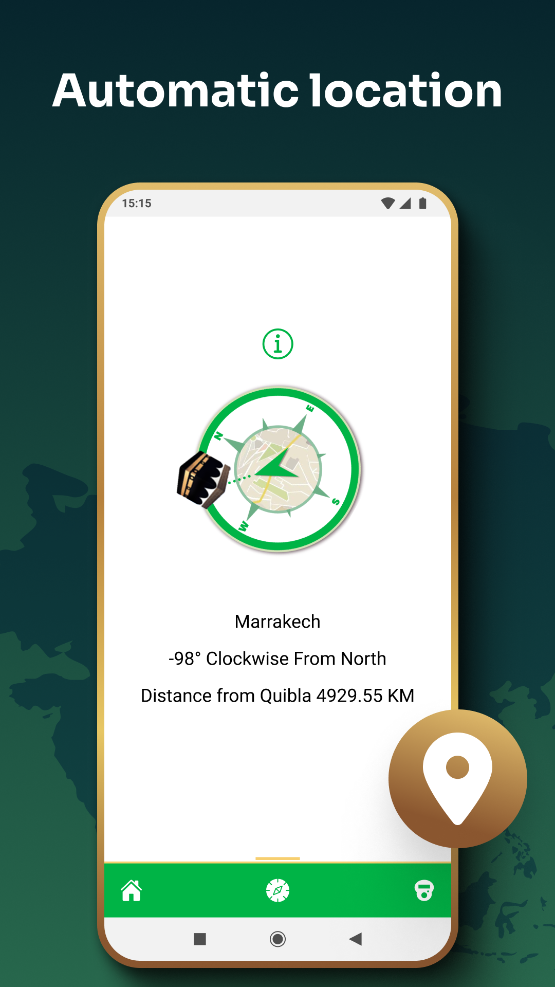 The app automatically retrieves your current location to enhance the accuracy of Qibla direction readings.