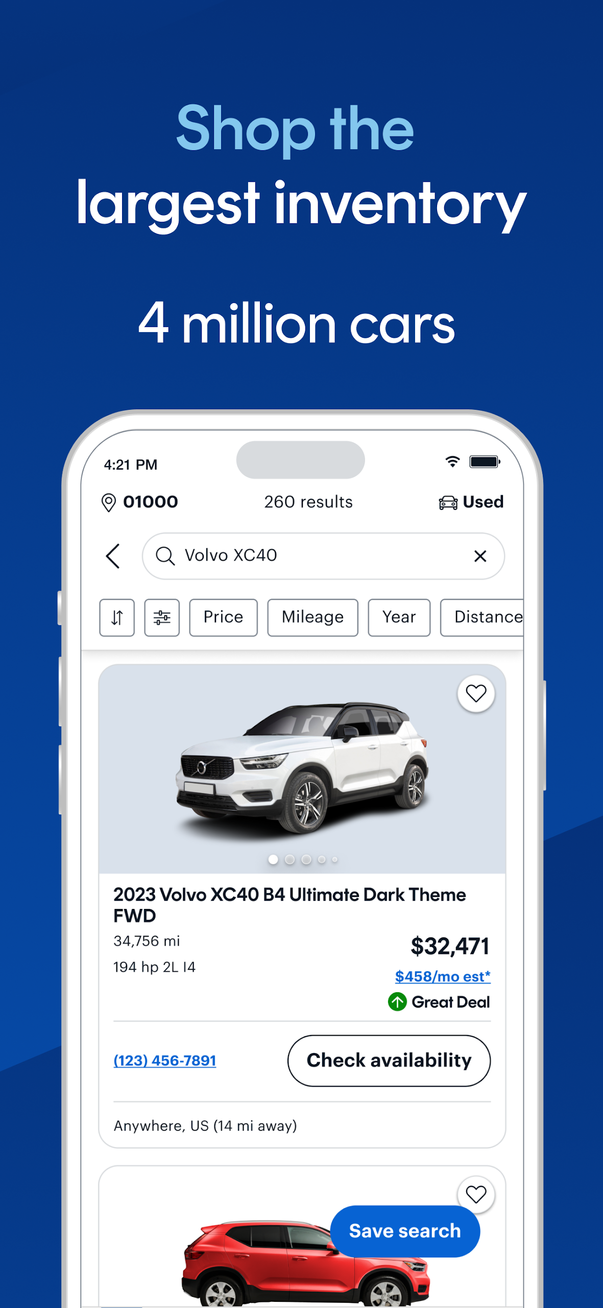 Receive notifications when there's a price drop on cars you have saved. Additionally, get insights on new deals and tailored car recommendations based on your search history.