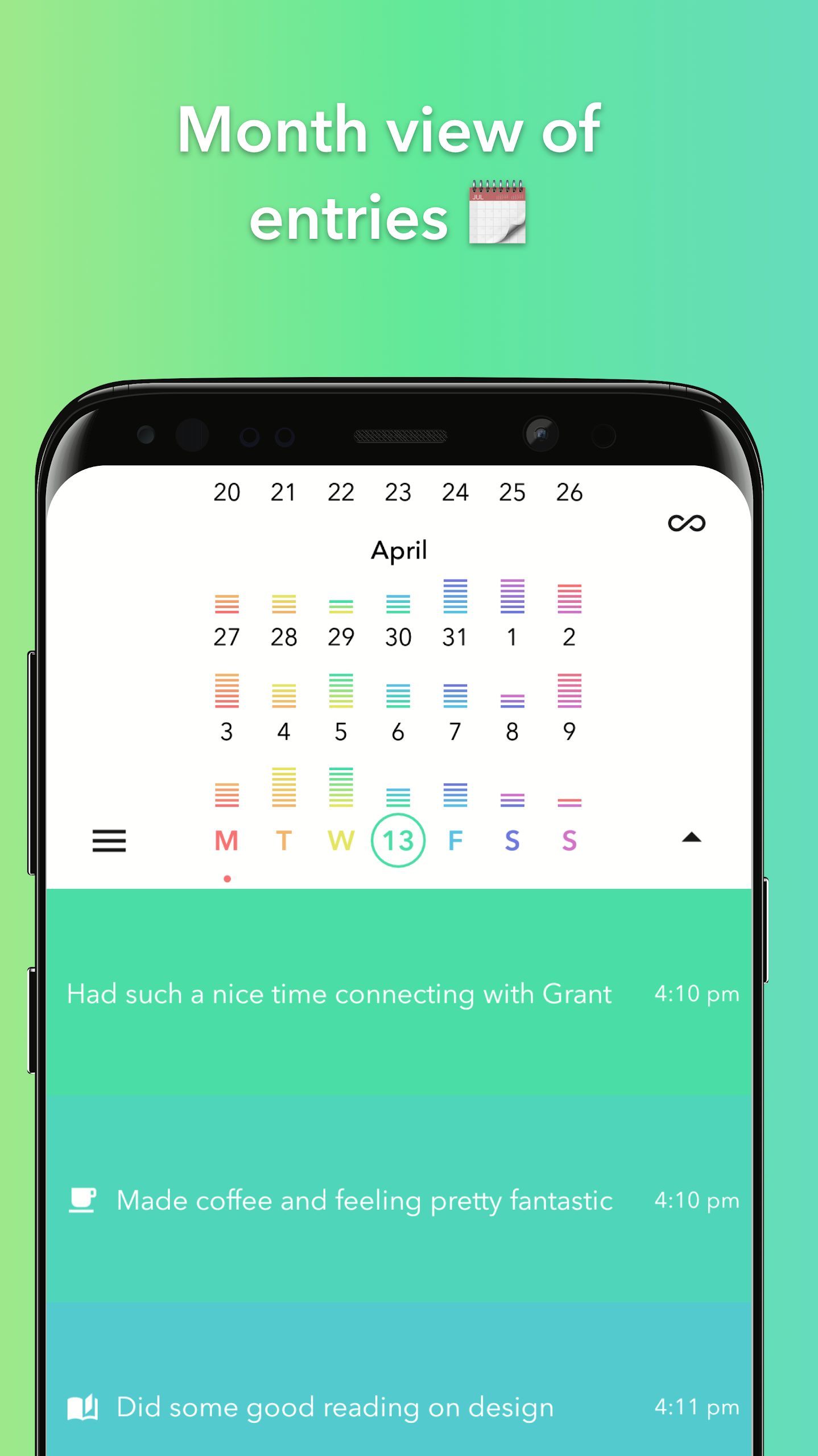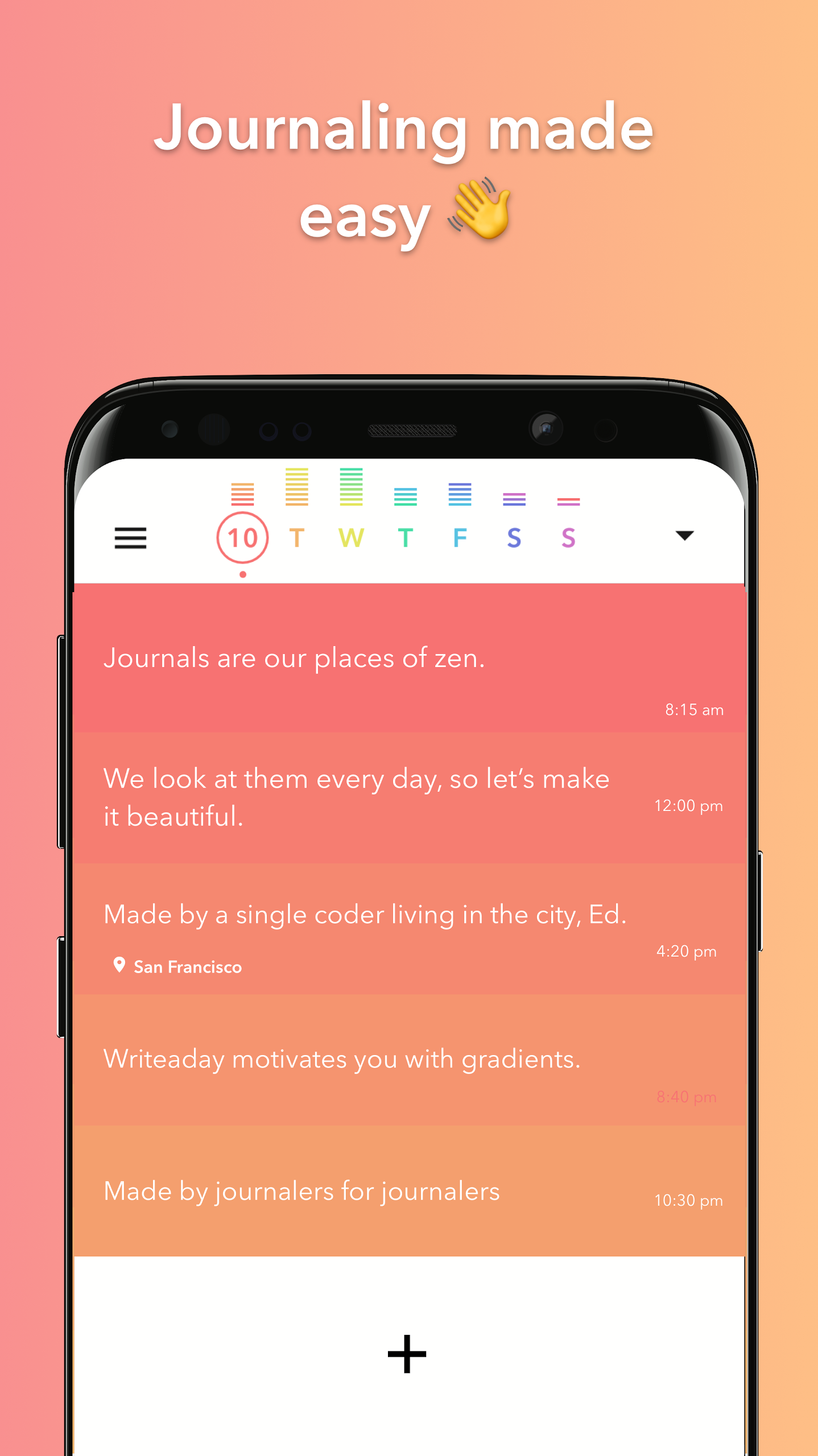 Developing a journaling routine can be challenging, but Writeaday simplifies this process by using a motivational color gradient that grows as you write more frequently.