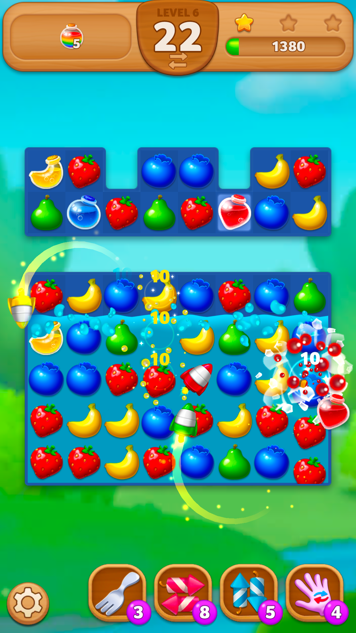 As you dive deeper into the game, you’ll engage in a worthy battle to liberate petrified fairies from the clutches of evil raccoons that are stealing their fruit. This heroic quest unveils more of the storyline, immersing you in an epic conflict between good and evil. Your efforts to rescue these fairies are crucial not only for their survival but also for the overall success of the game. Each swipe does more than just match fruits; it transforms you into a beacon of hope for these helpless elves.