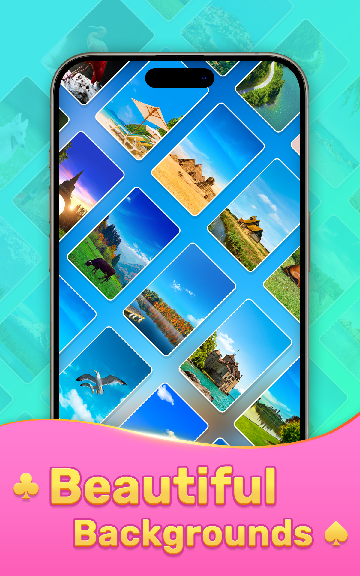 This classic solitaire features hundreds of beautiful backgrounds, immersing you in stunning views of mountains, forests, and more as you play Klondike solitaire. You'll also be charmed by the delightful animals that appear in the serene backgrounds.