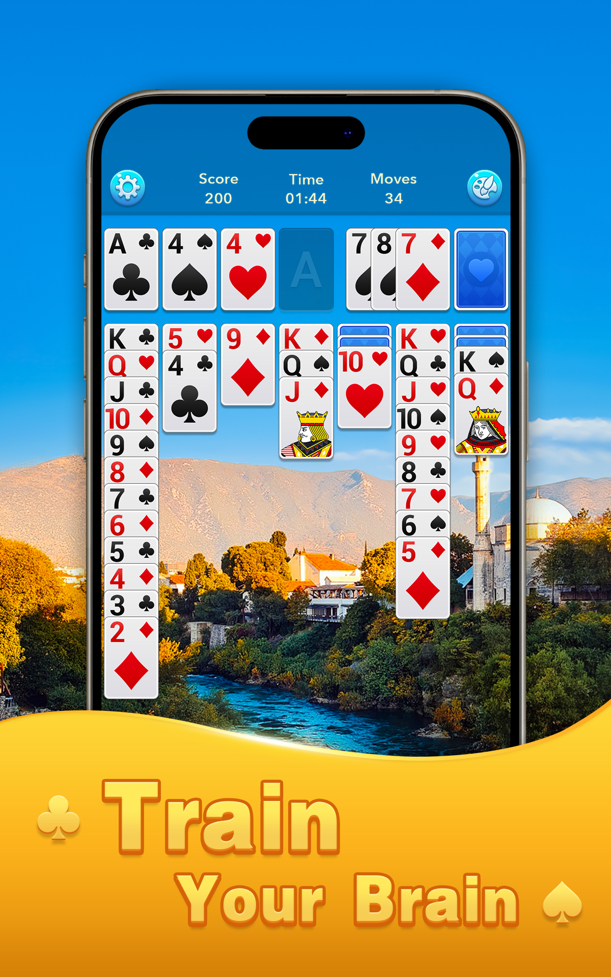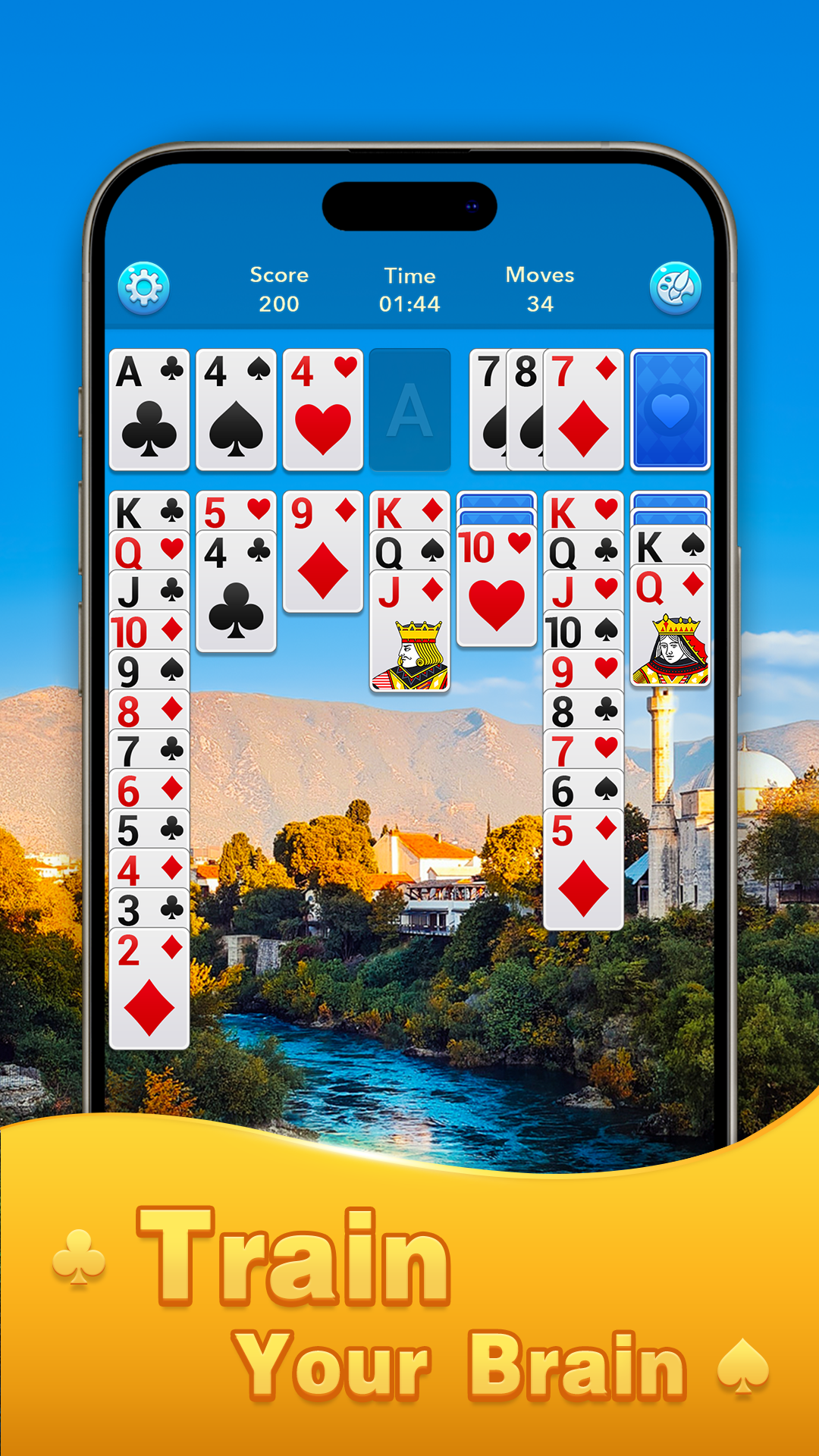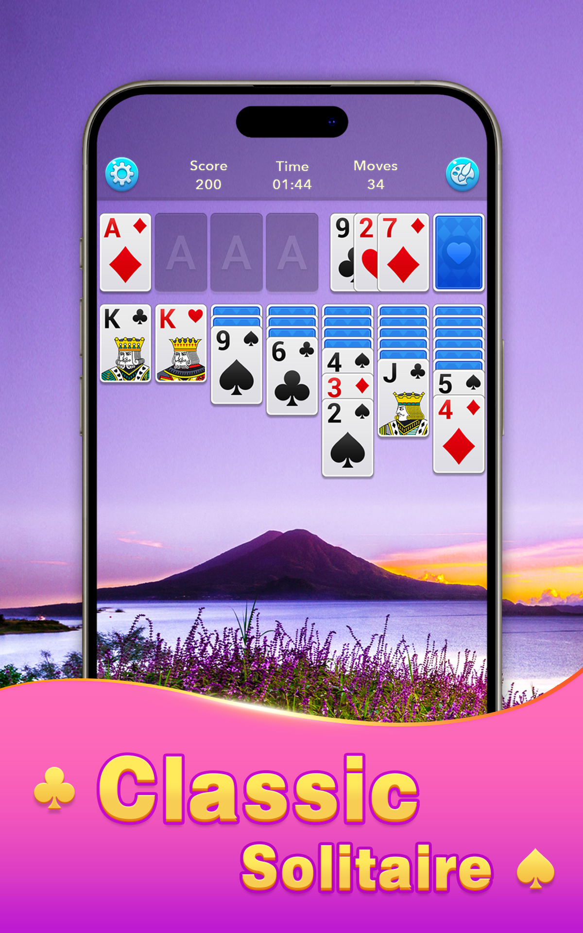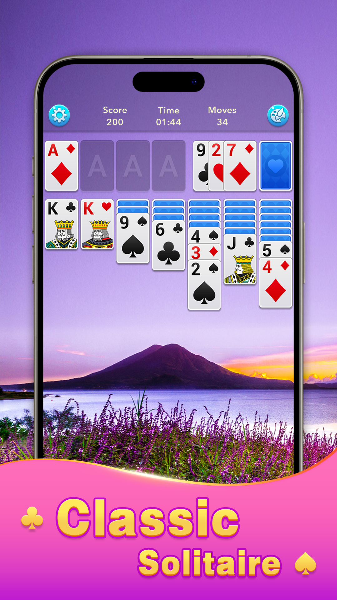 Download our perfect solitaire game to not only relax but also exercise your mind. Classic Klondike offers engaging gameplay along with beautiful artwork that transports you to serene landscapes and charming settings.