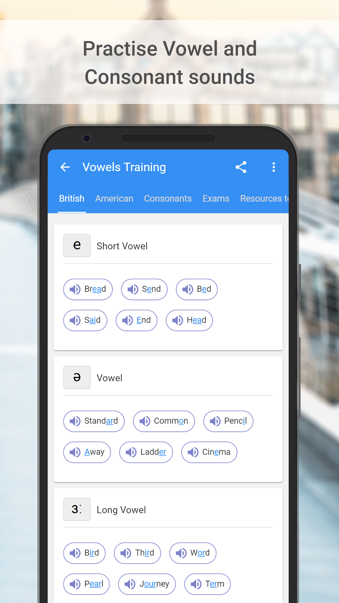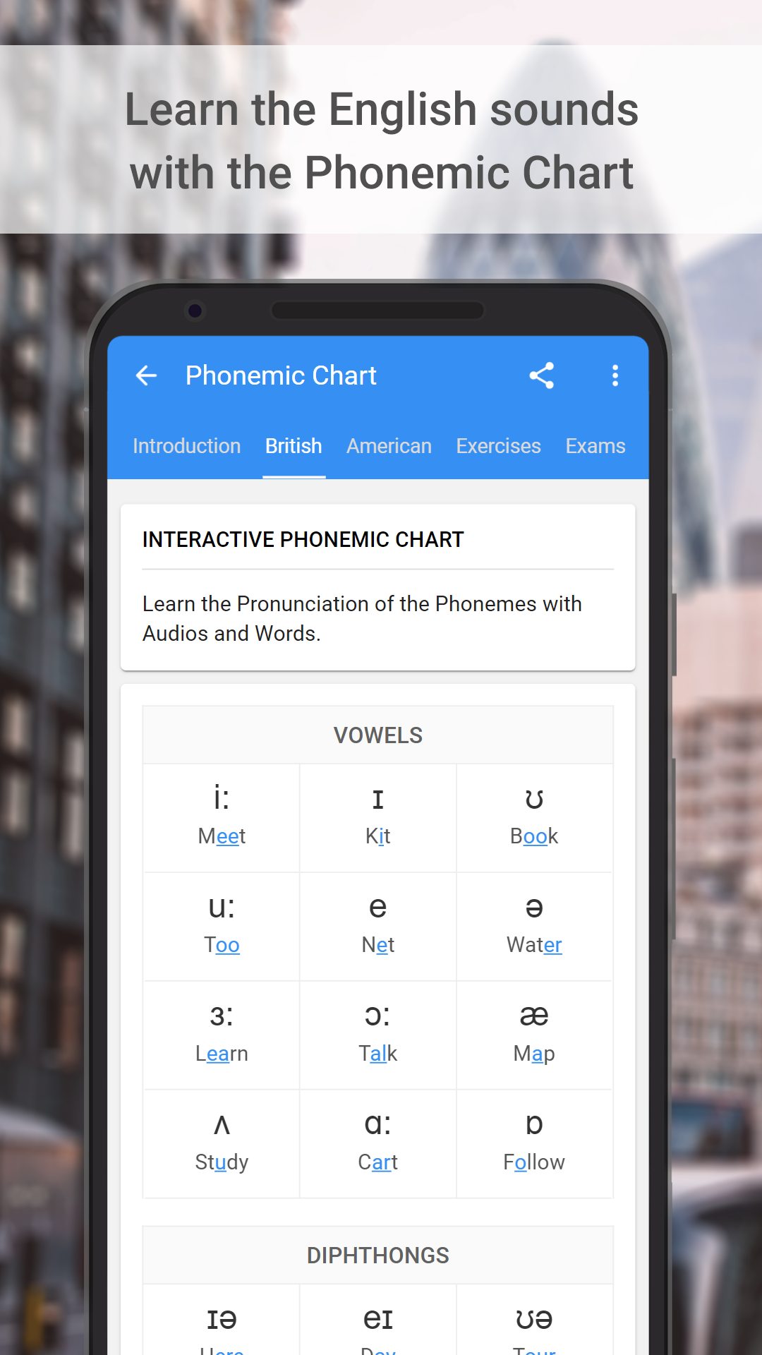 A list of phonemes with examples in common spelling alongside their transcription for reference.