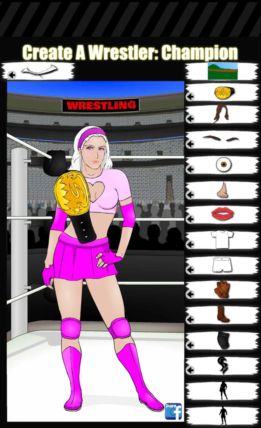 Select from a wide variety of eye colors, hairstyles, and facial hair options to enhance your wrestler's distinctiveness.