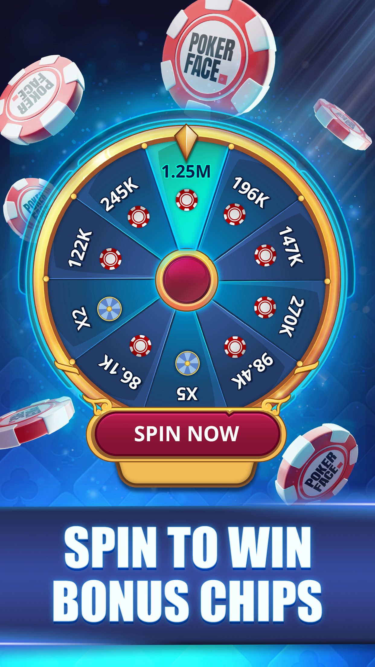Unlock tremendous rewards as you dive into gameplay. Poker Face is loaded with generous bonuses, daily rewards, and exciting challenges designed to keep you coming back for more. Complete missions, spin the daily bonus wheel, and collect free chips to enhance your bankroll. The more you play, the more you earn!