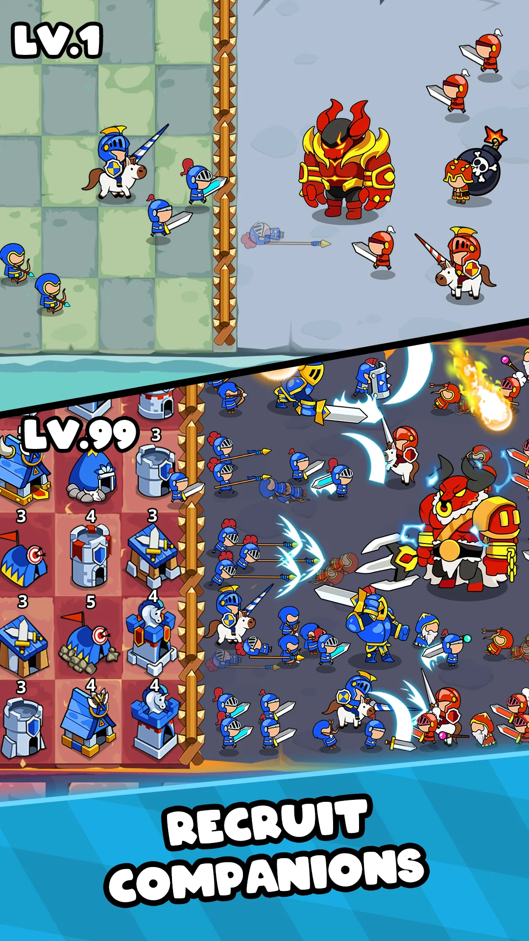 In Merge Towers Kingdom Defense, you will fully exercise your brain, eyes, and hands as you improve your logic and agility. You must think critically about different methods to solve the problems presented. Playing this game is a continuous cycle of experimentation and reflection where you'll discover solutions through trial and error, so patience is key.