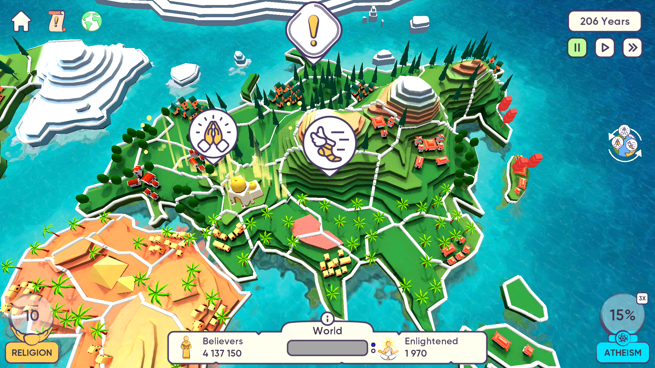 At Religion Inc, you hold the ultimate power as you create your own religion and establish its laws. Your primary goal is to nurture and expand this faith, instilling absolute conviction among your followers.