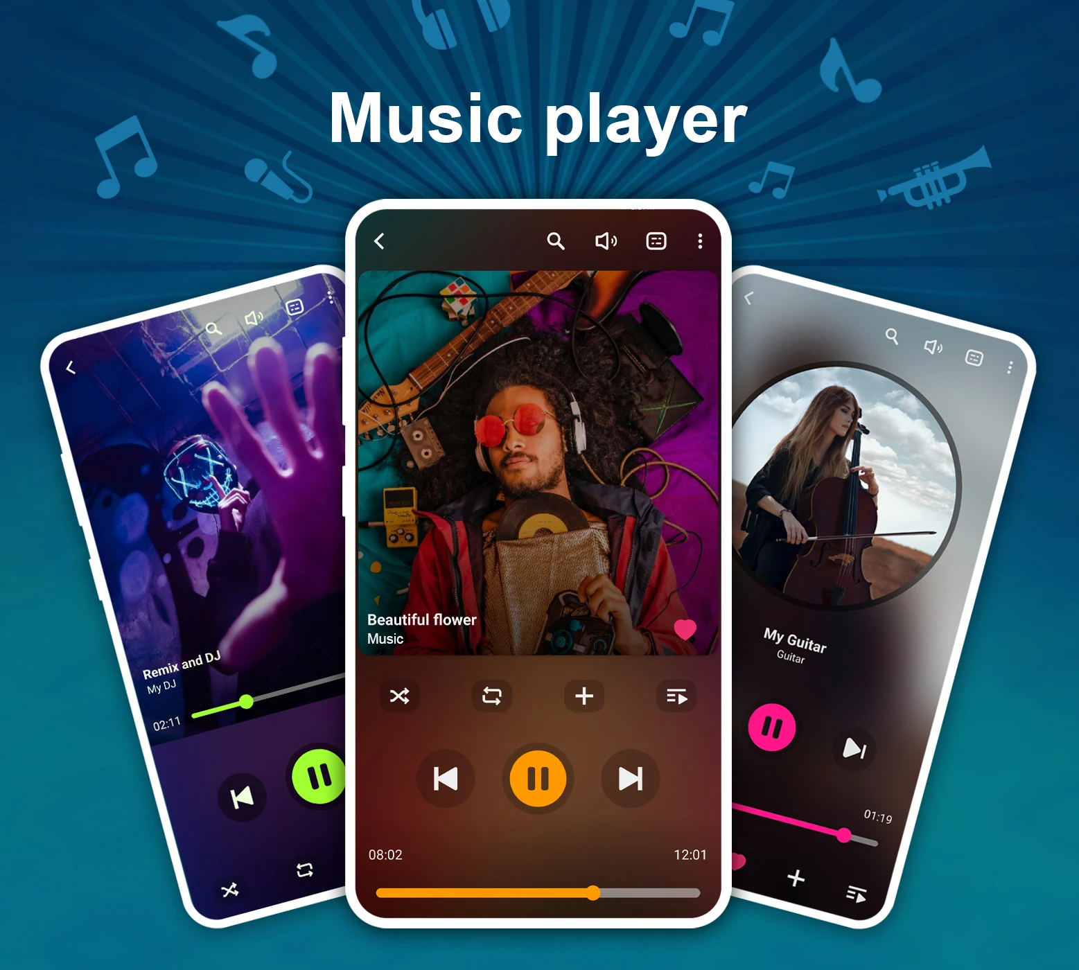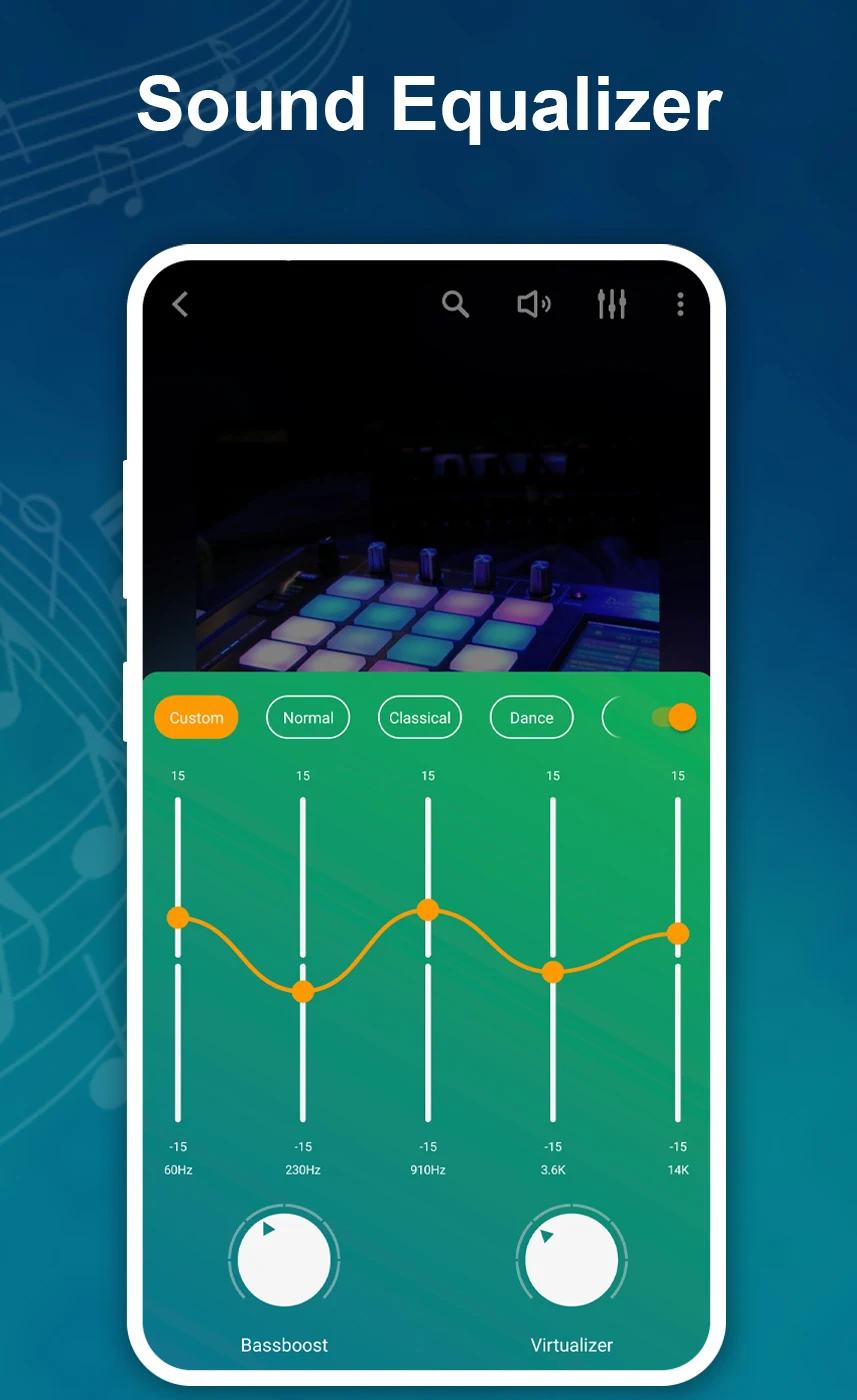 The sound editing capabilities of the Music Player are exceptional, delivering a highly polished audio experience. To fully immerse yourself in the world of music, utilize the Sound Equalizer feature, which offers various customization options tailored to your personal preferences.