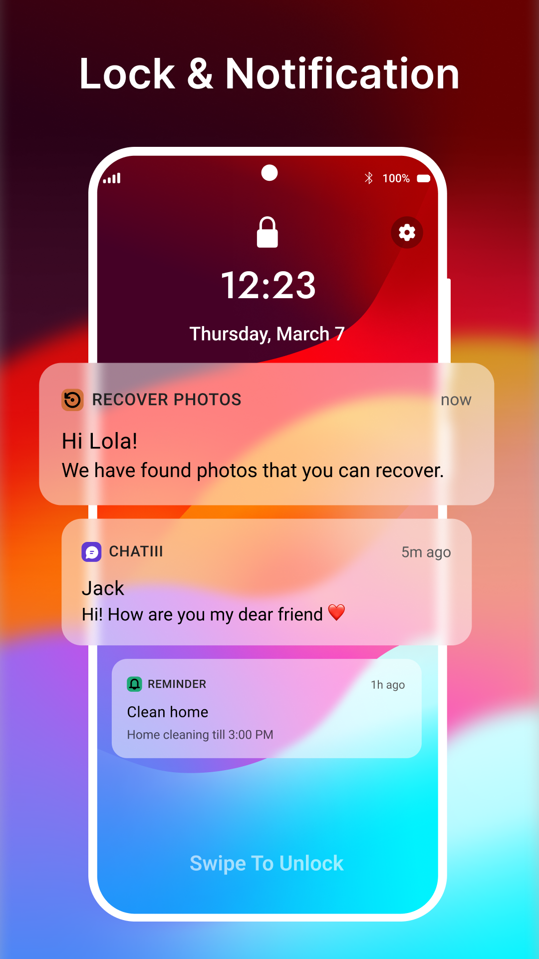 Enjoy a visually appealing lock screen with a range of color backgrounds.