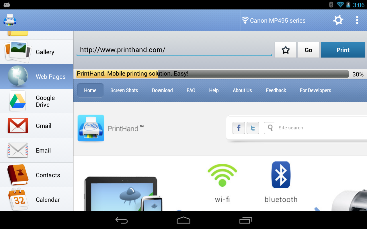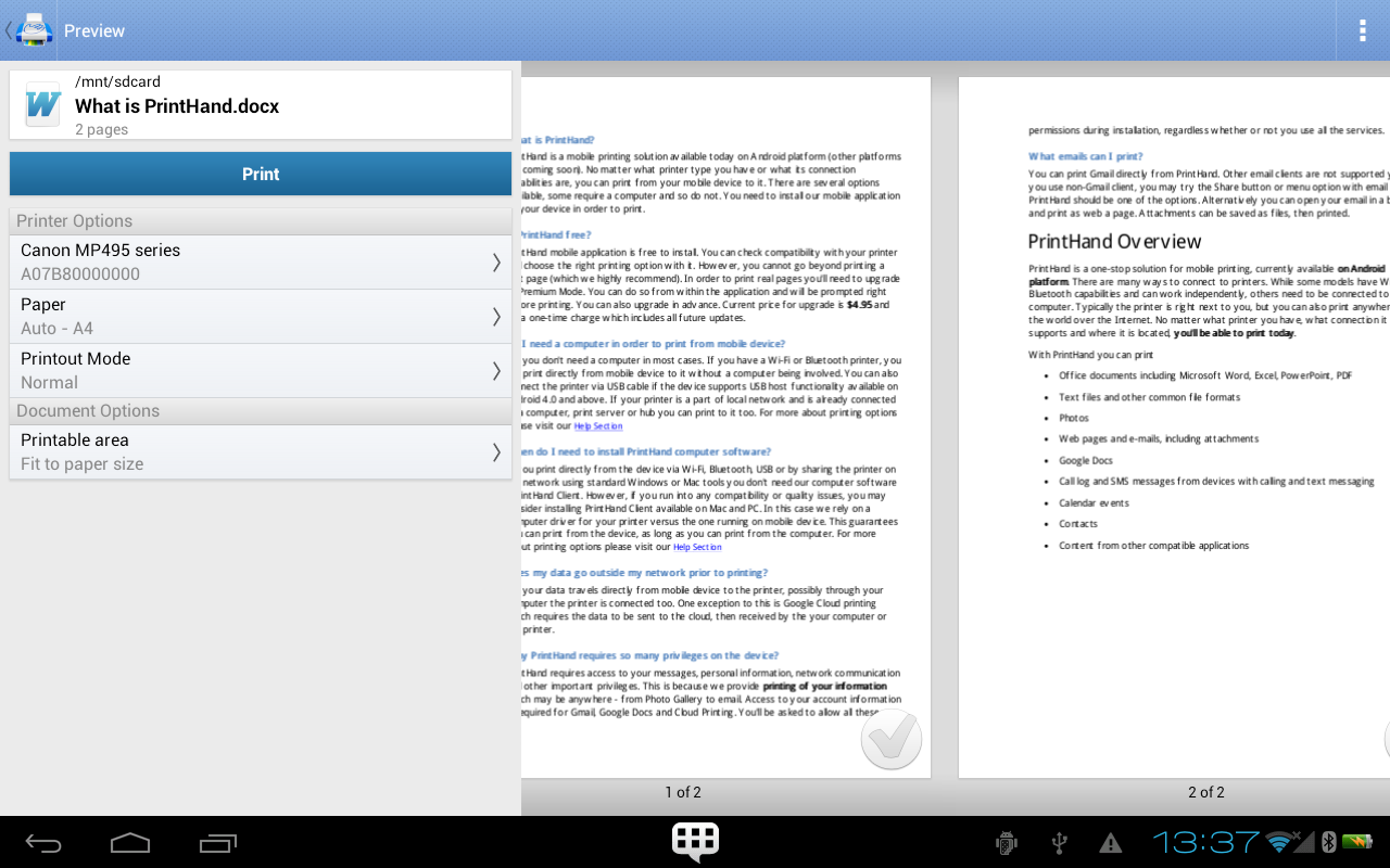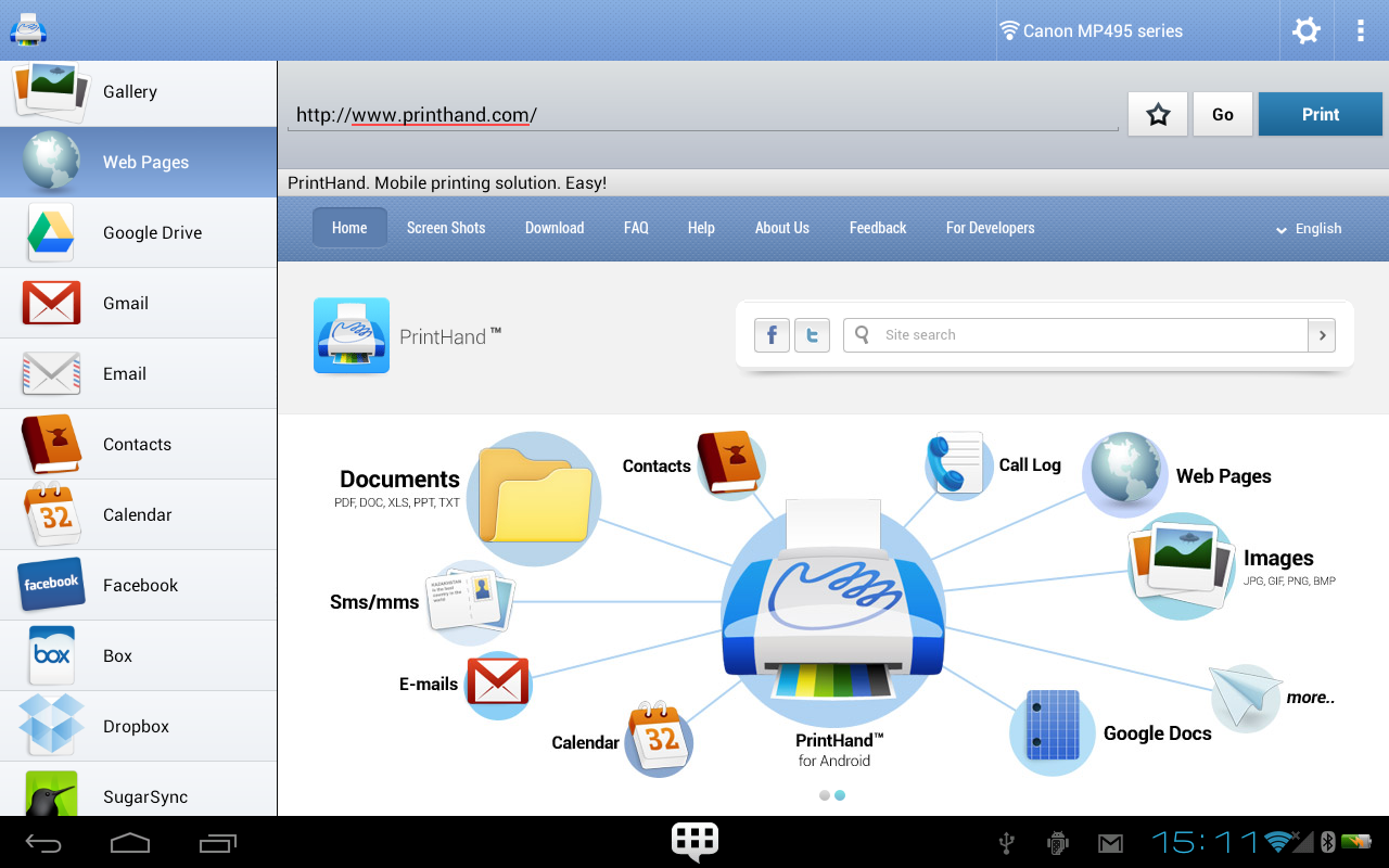 The PrintHand Mobile Print app allows you to print documents, photos, web pages, and more.
