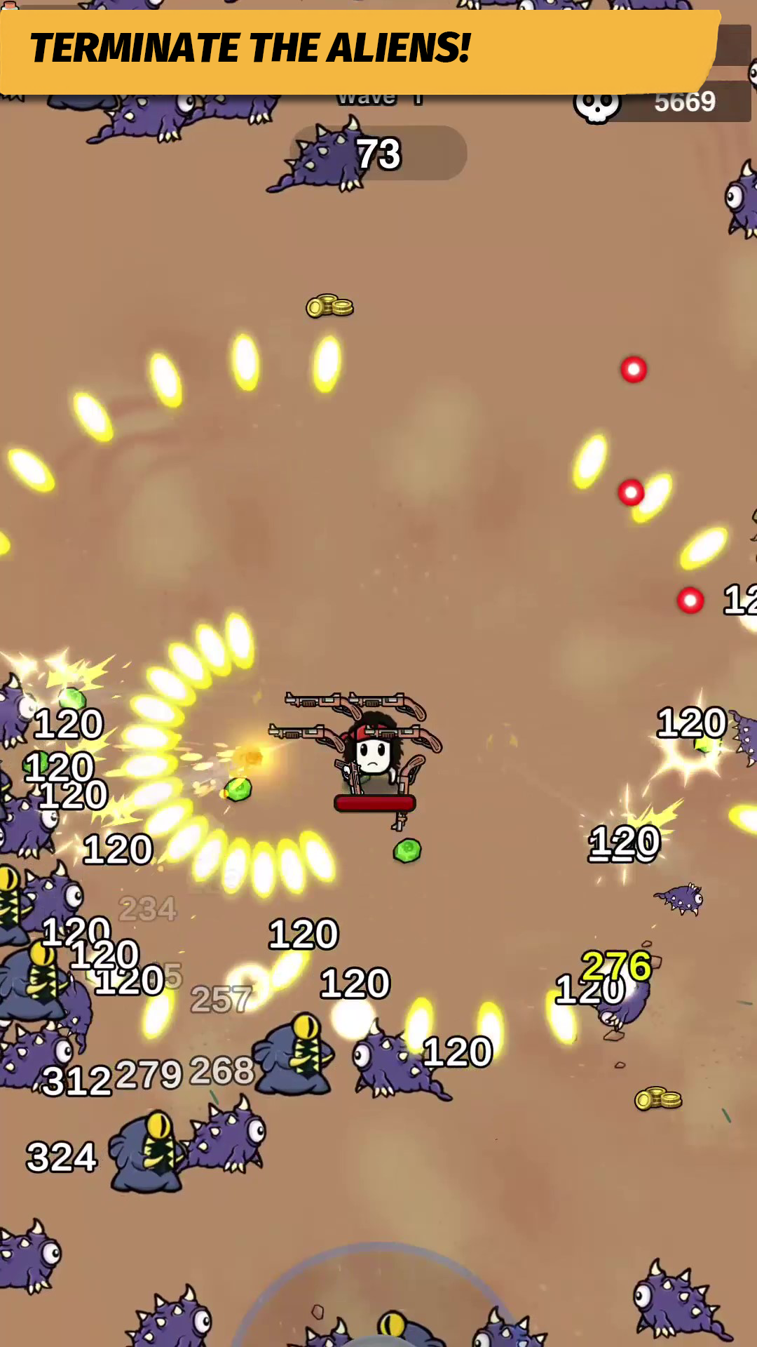 Equipped with a variety of weapons, the warrior survives to fight another day. His encounters on the alien planet help him discover powerful new combat tools which he uses to defend his city upon returning. As the number of monsters increases, it becomes clear that relying on just one weapon isn’t enough. Each weapon offers a unique fighting style and varying effectiveness against the monsters. Players can strategically select the hero's arsenal before battles to maximize their chances of survival in this intense struggle against the creatures from the alien world.