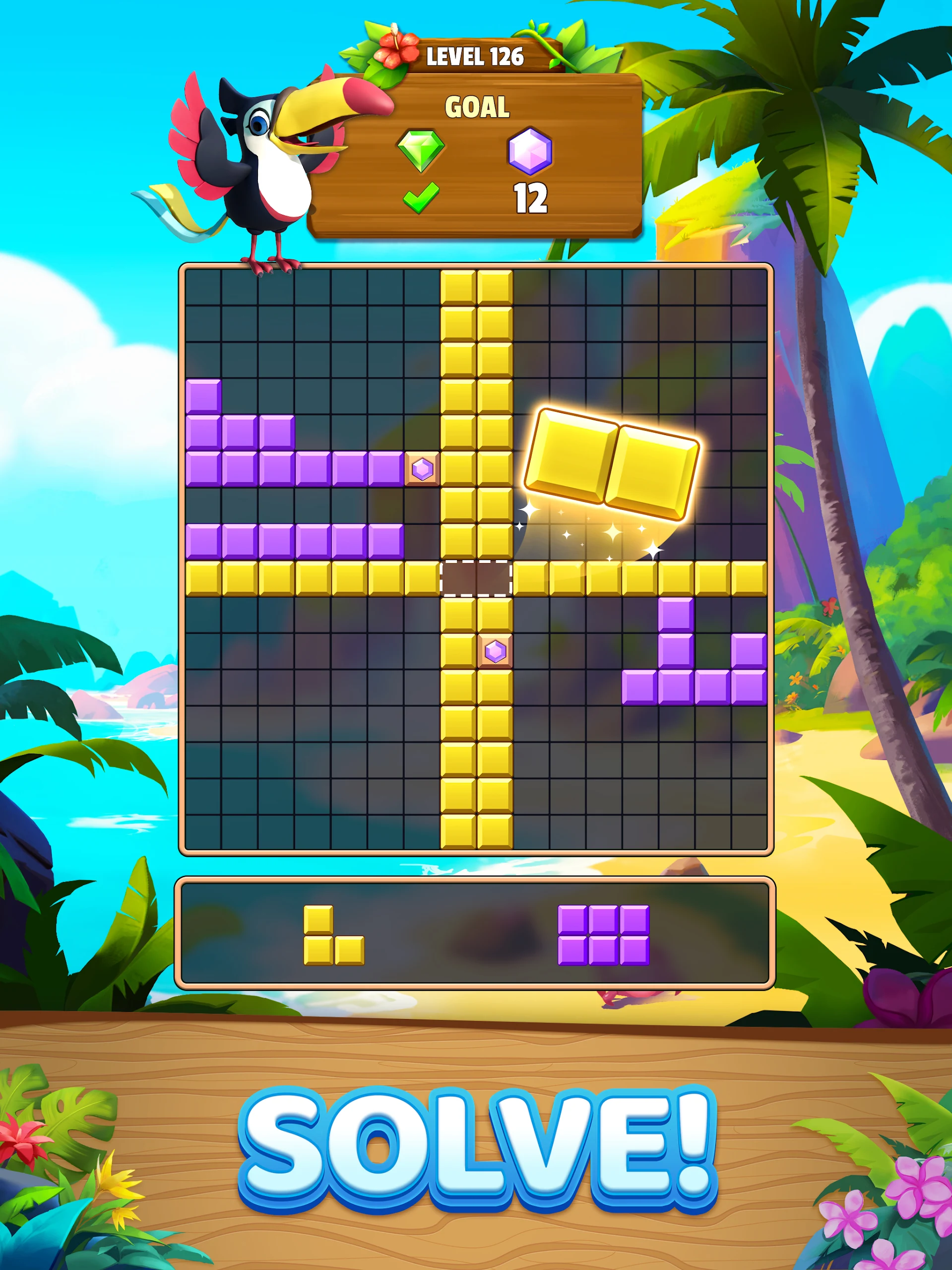The audio design in Blockscapes Paradise significantly contributes to the immersive tropical experience. Natural sounds, such as the gentle crash of waves, the chirping of tropical birds, and the soft rustling of palm leaves in the breeze, create a harmonious soundtrack that complements the visuals. This tranquil music and calming ambience draw players into the game, allowing them to focus fully on the puzzle-solving experience without distractions.