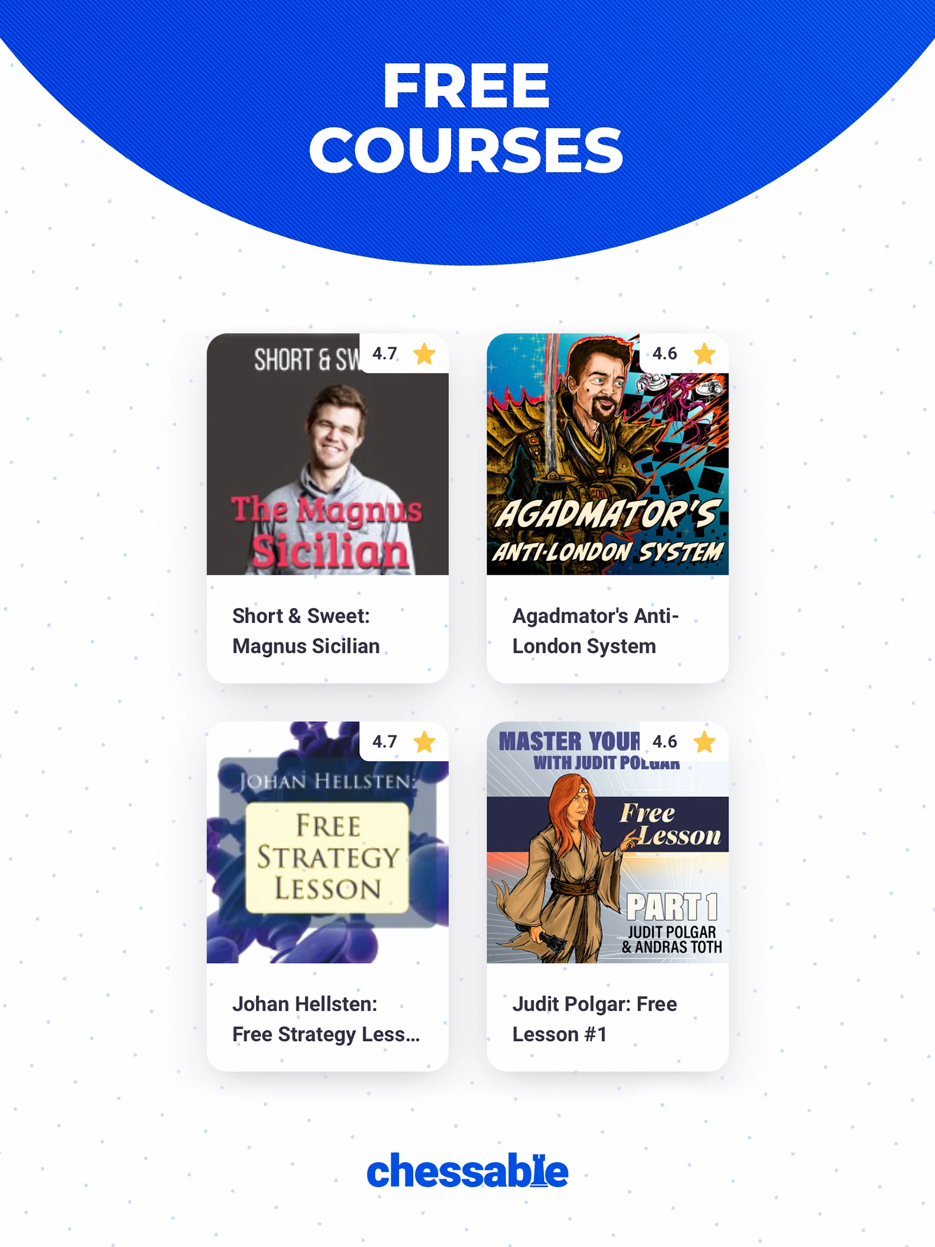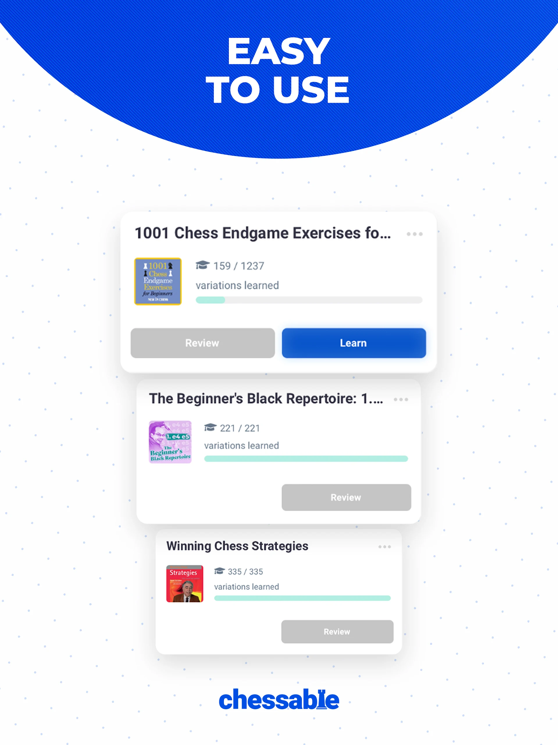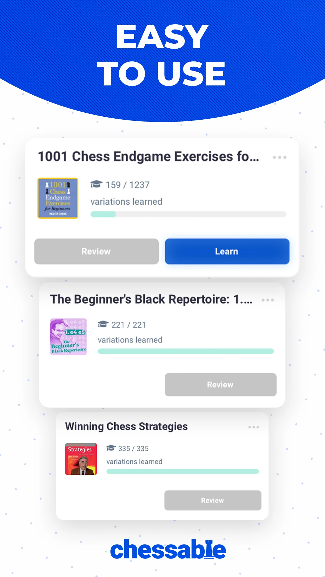 Chessable.com is a platform developed by passionate chess players and enthusiasts dedicated to helping others improve their chess skills.