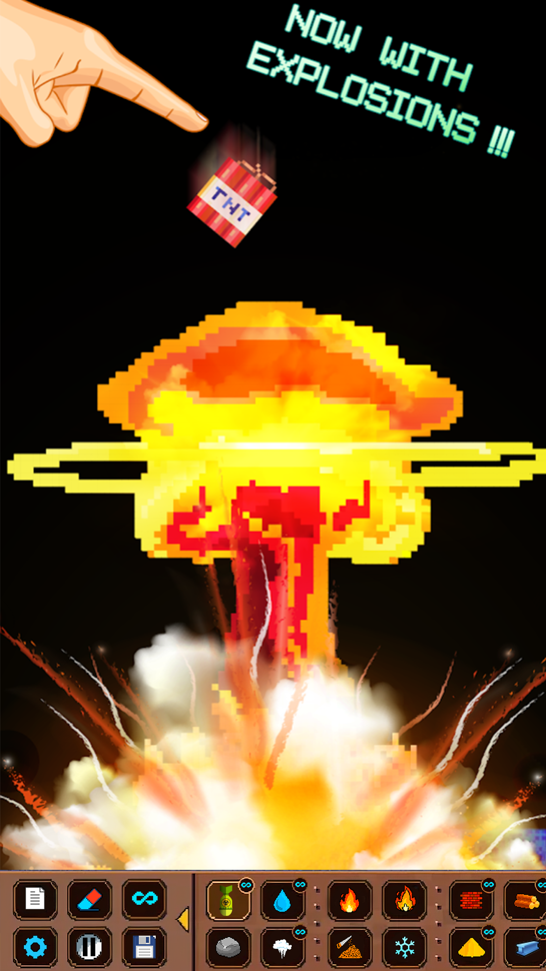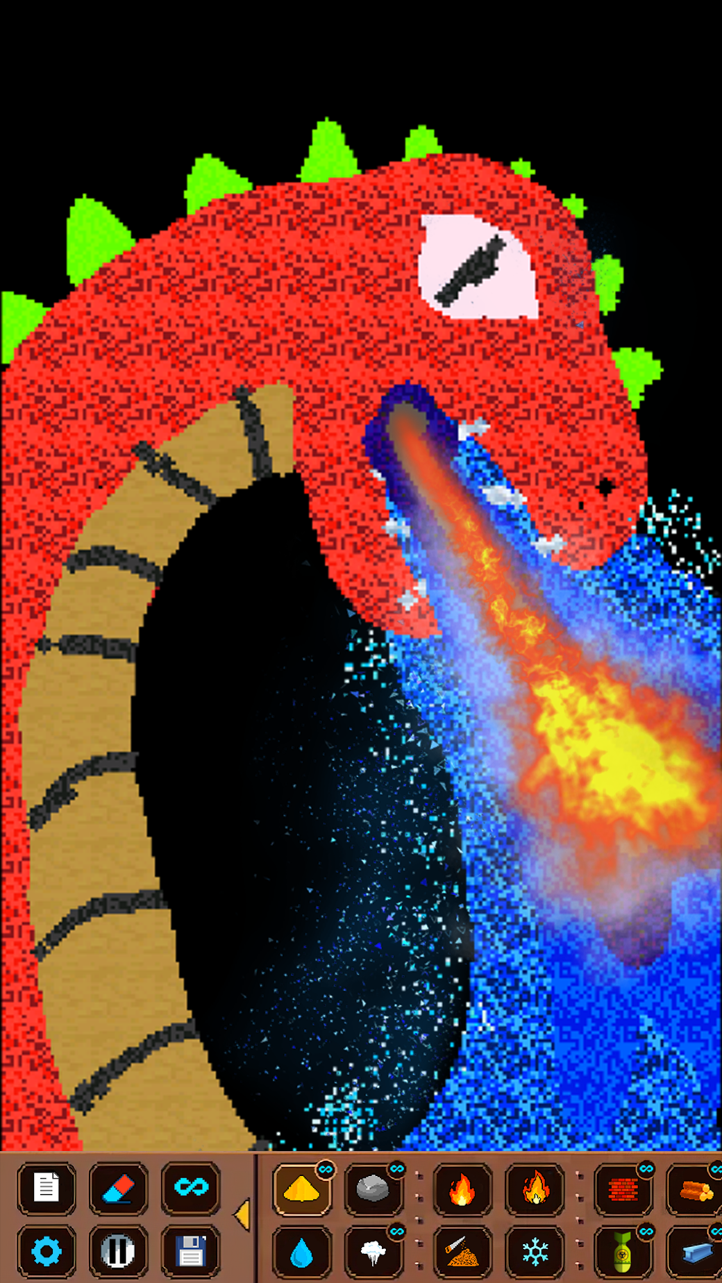 Experience complete particle sandbox mechanics with rotation. Use different elements, observe interactions, and see results. Combine everything and blow up Falling Sand for added excitement!
