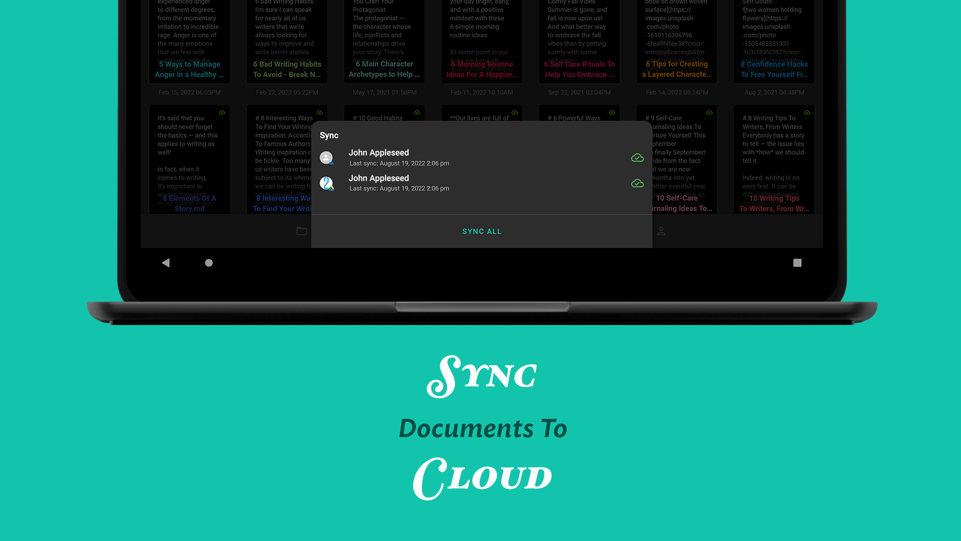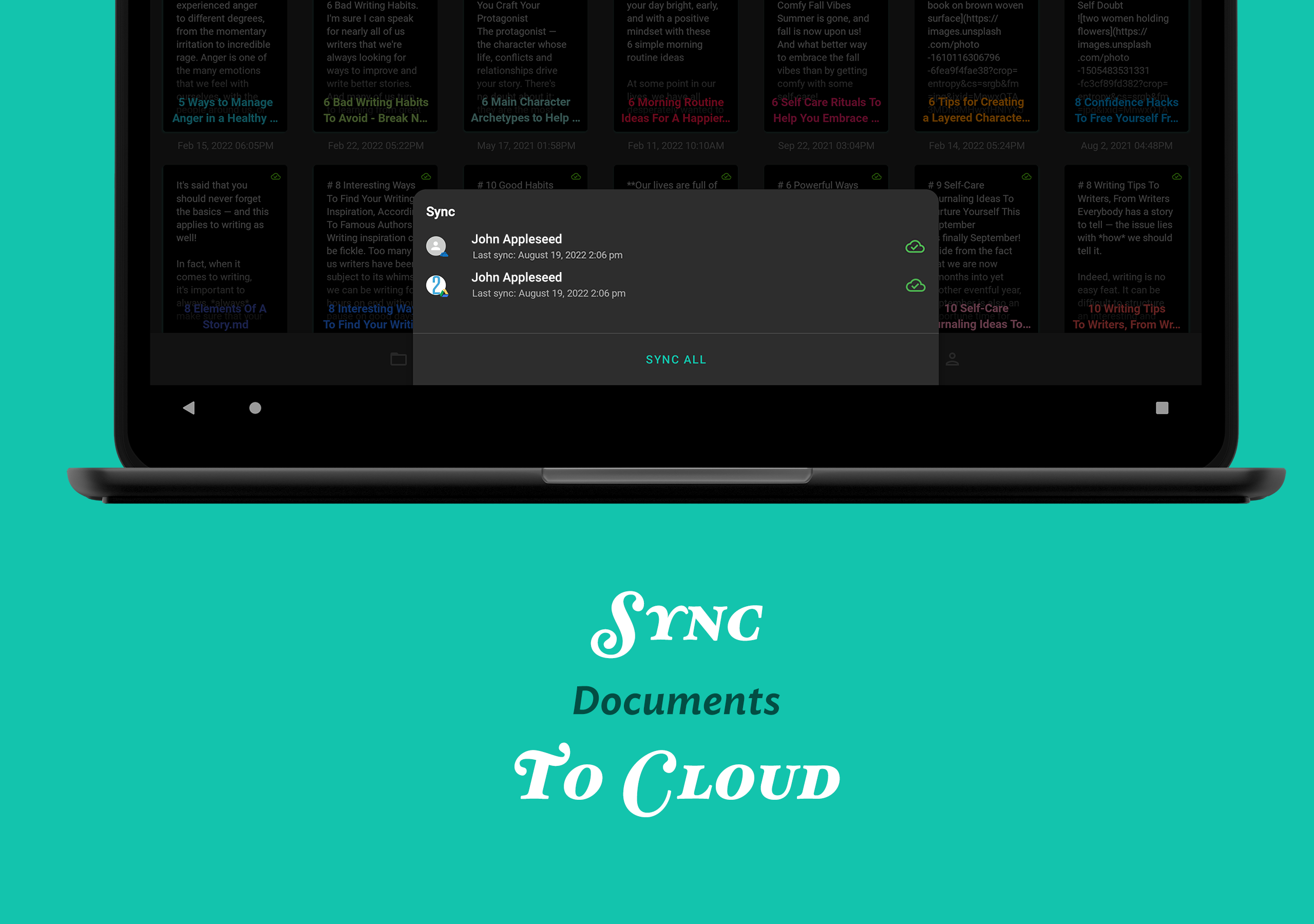 By allowing you to write, create text, or manage files anytime and anywhere, JotterPad ensures your notes and resources are always synced when connected to the internet. This functionality guarantees that your progress and unfinished work remain secure, enabling you to focus on completing your writing confidently—no matter where you are.