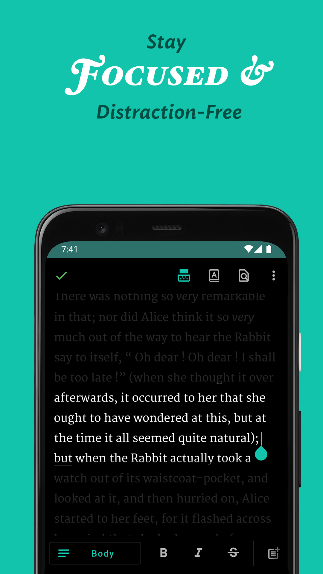 Create your own personalized writing space using a collection of beautiful typefaces and customizable typography. JotterPad allows your creativity to flow effortlessly, keeping you engaged in your writing.