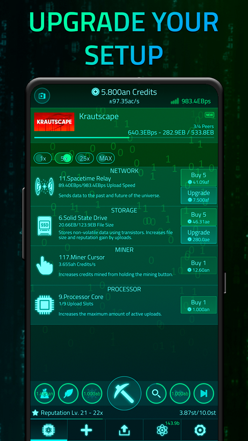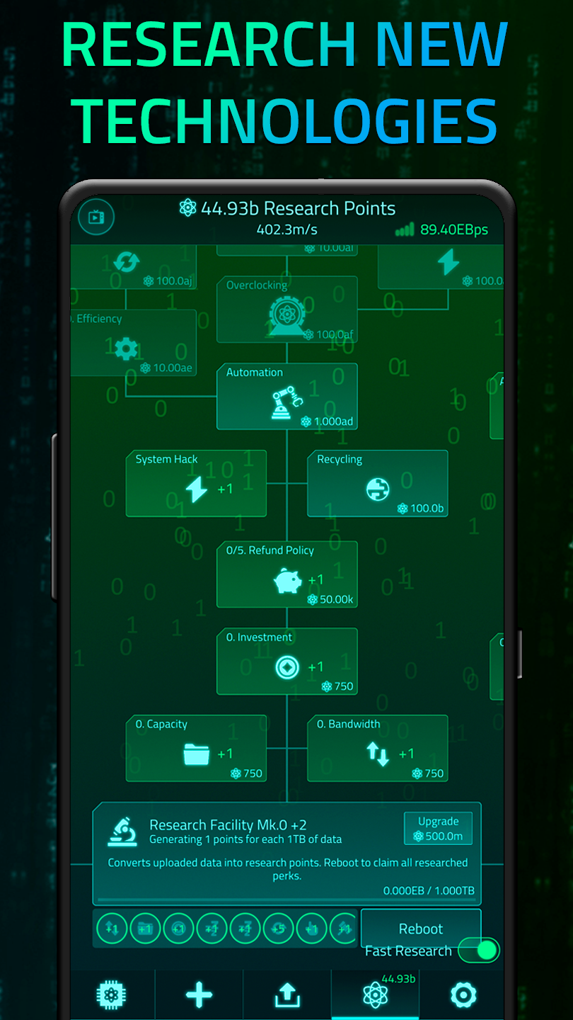 Explore sci-fi components as you watch progress bars fill up faster with each upgrade.