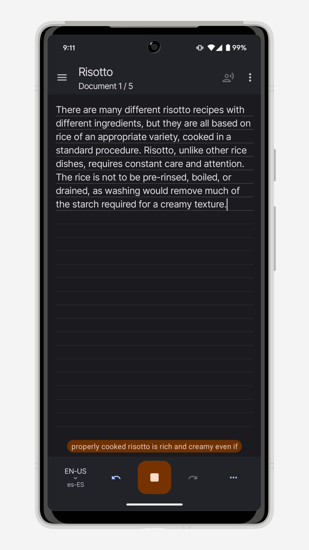 When crafting an SMS message, you can easily record your voice using a mobile device and transfer it to a messaging app. This feature streamlines the text composition process. Advanced voice input supports multiple languages and delivers accurate speech recognition. The application automatically saves new documents, allowing for an unlimited number of pages. Additionally, special attention has been given to ensuring text recovery in case important documents are accidentally deleted.