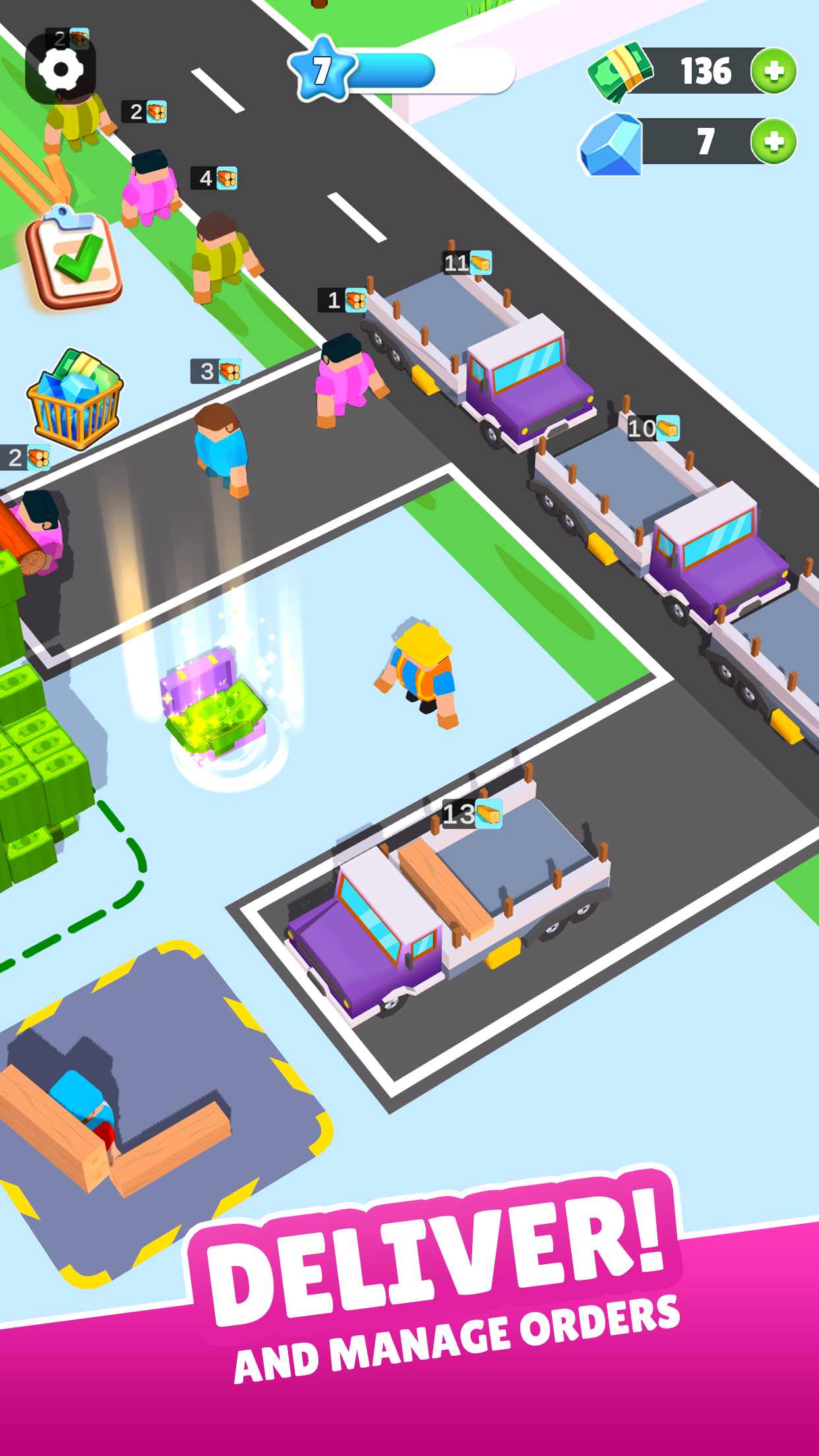 Your primary goal is to produce and sell lumber. Manage the lumberyard by cutting down trees, processing logs, and delivering finished products to customers.