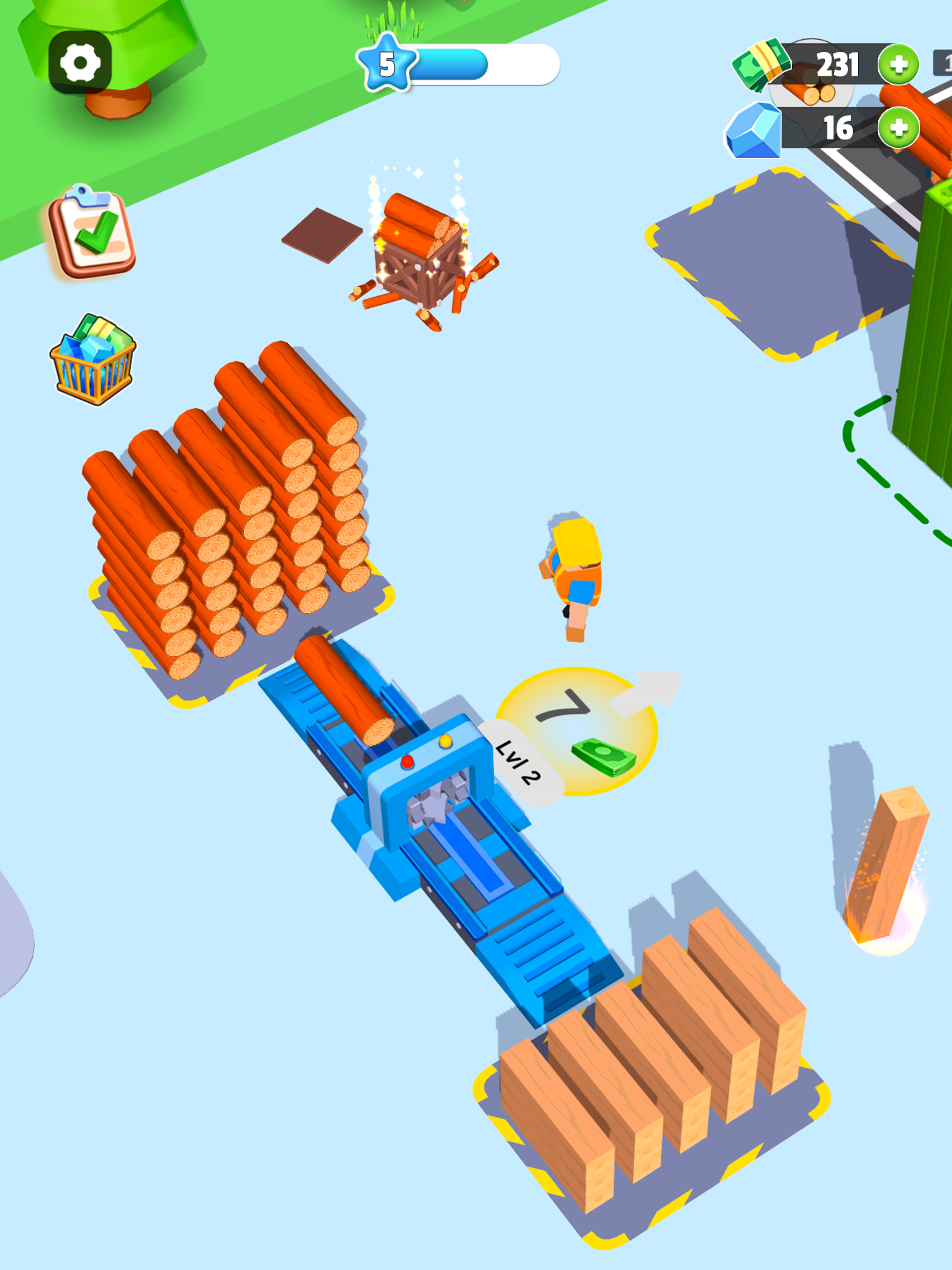 Experience the creativity and excitement of Wood Factory - Lumber Tycoon, where you can create your empire in the world of lumber!