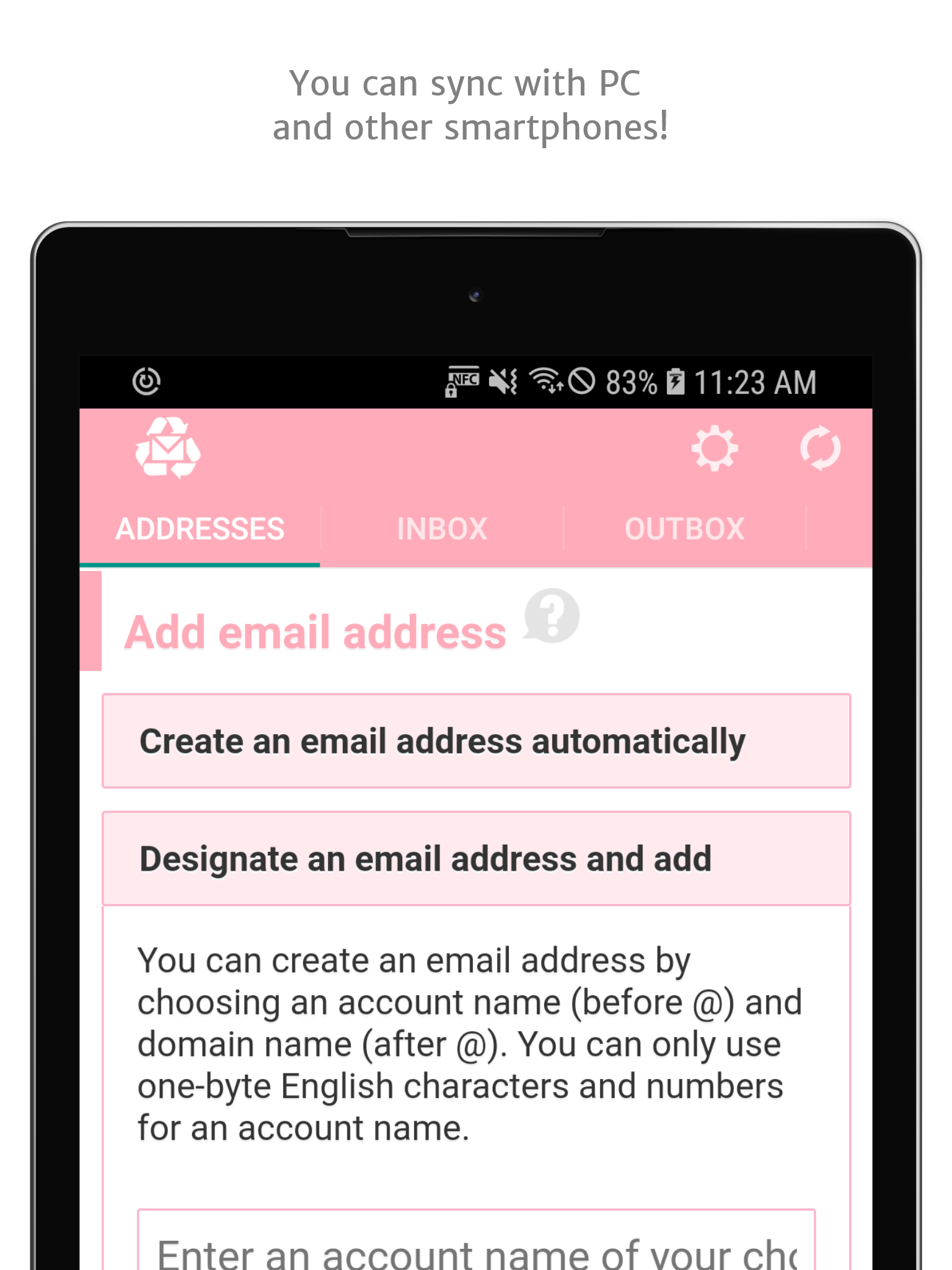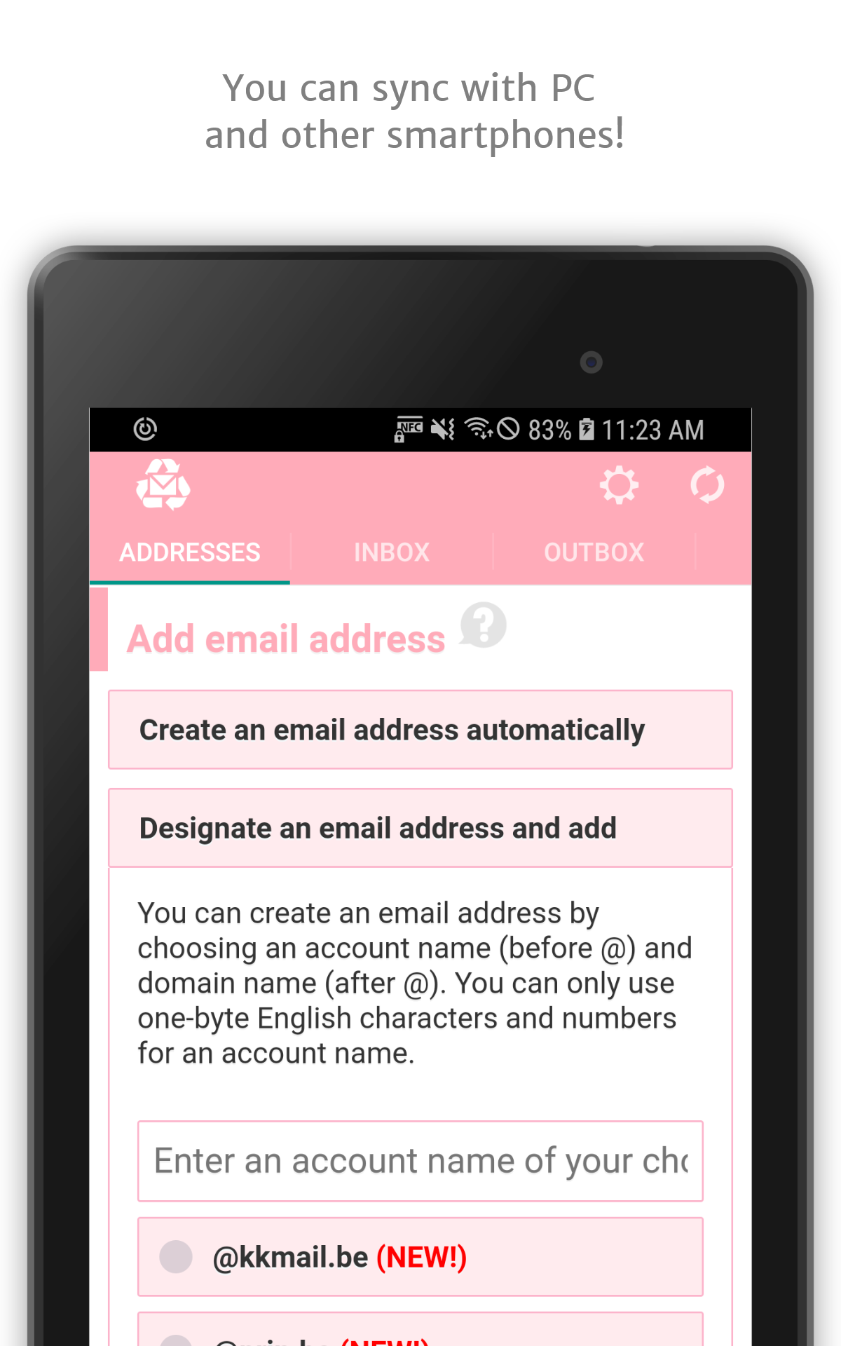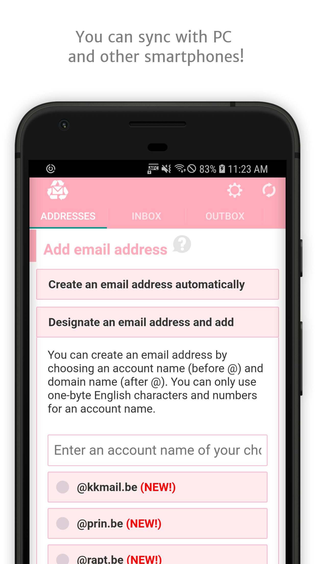 Choose characters for your custom address or let the application generate simple, memorable email addresses automatically.