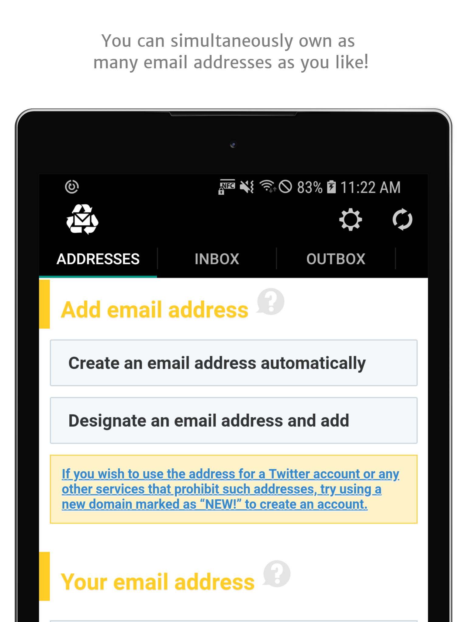 Users can create and manage multiple email addresses simultaneously.