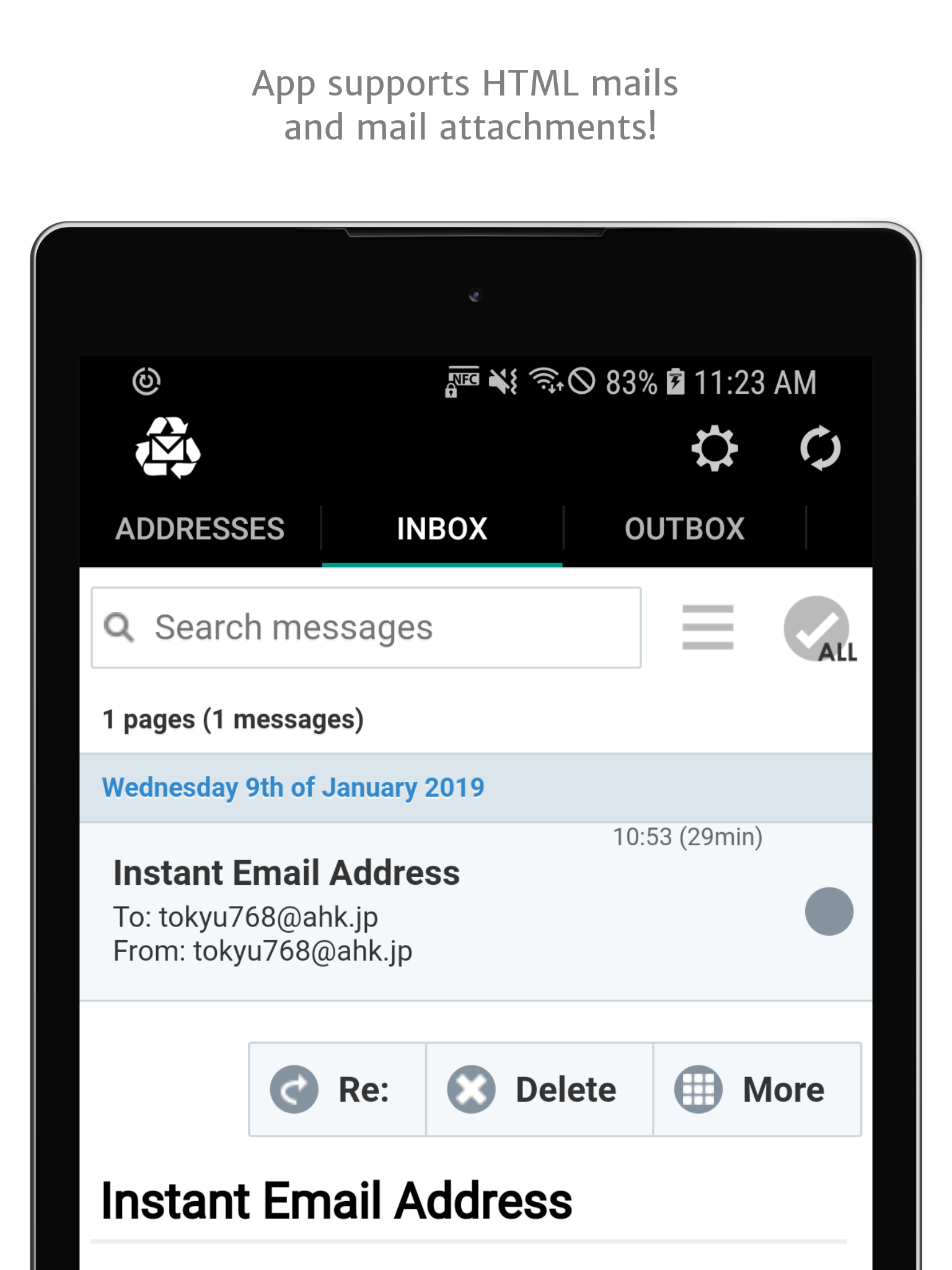 Compose, reply, forward, and share messages from your generated email addresses.