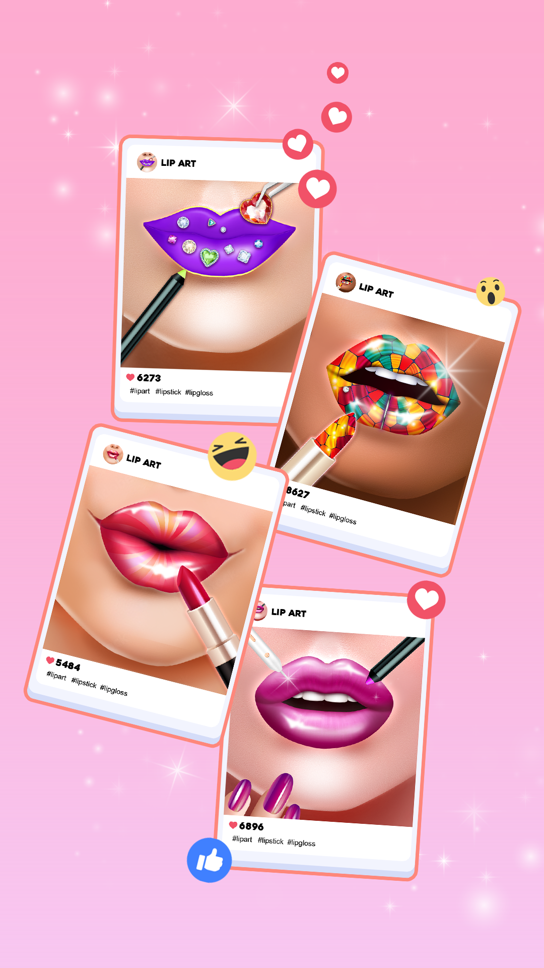 Take on various playful lip makeup challenges designed to test your creativity and precision. Each challenge presents opportunities to recreate specific designs or try new techniques, providing you with rewards like new tools and designs for future projects.