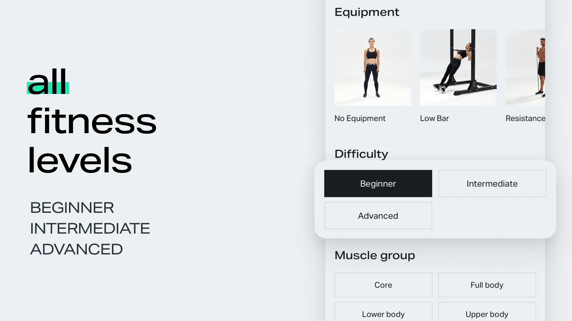 Access over 900 workout variations targeting all muscle groups for continuous progression.