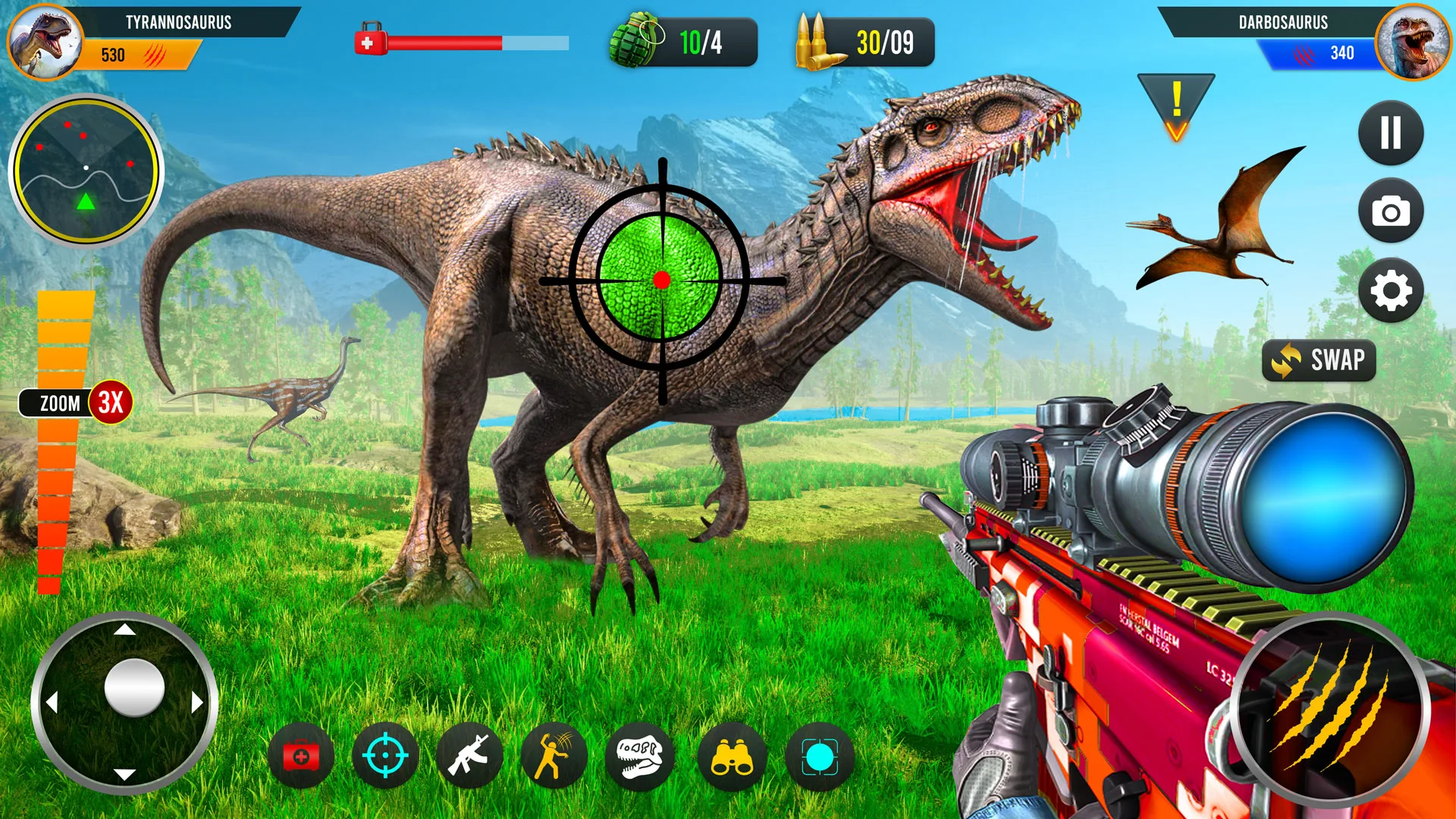 Prepare for an exhilarating experience in a variety of hunting games that feature dangerous dinosaurs and exotic wildlife. Engage in virtual dinosaur hunts to refine your skills as a hunter while increasing your knowledge of prehistoric creatures. It's time to embrace the role of a true dinosaur hunter as you embark on a thrilling adventure among dense forests, searching for wild animals.