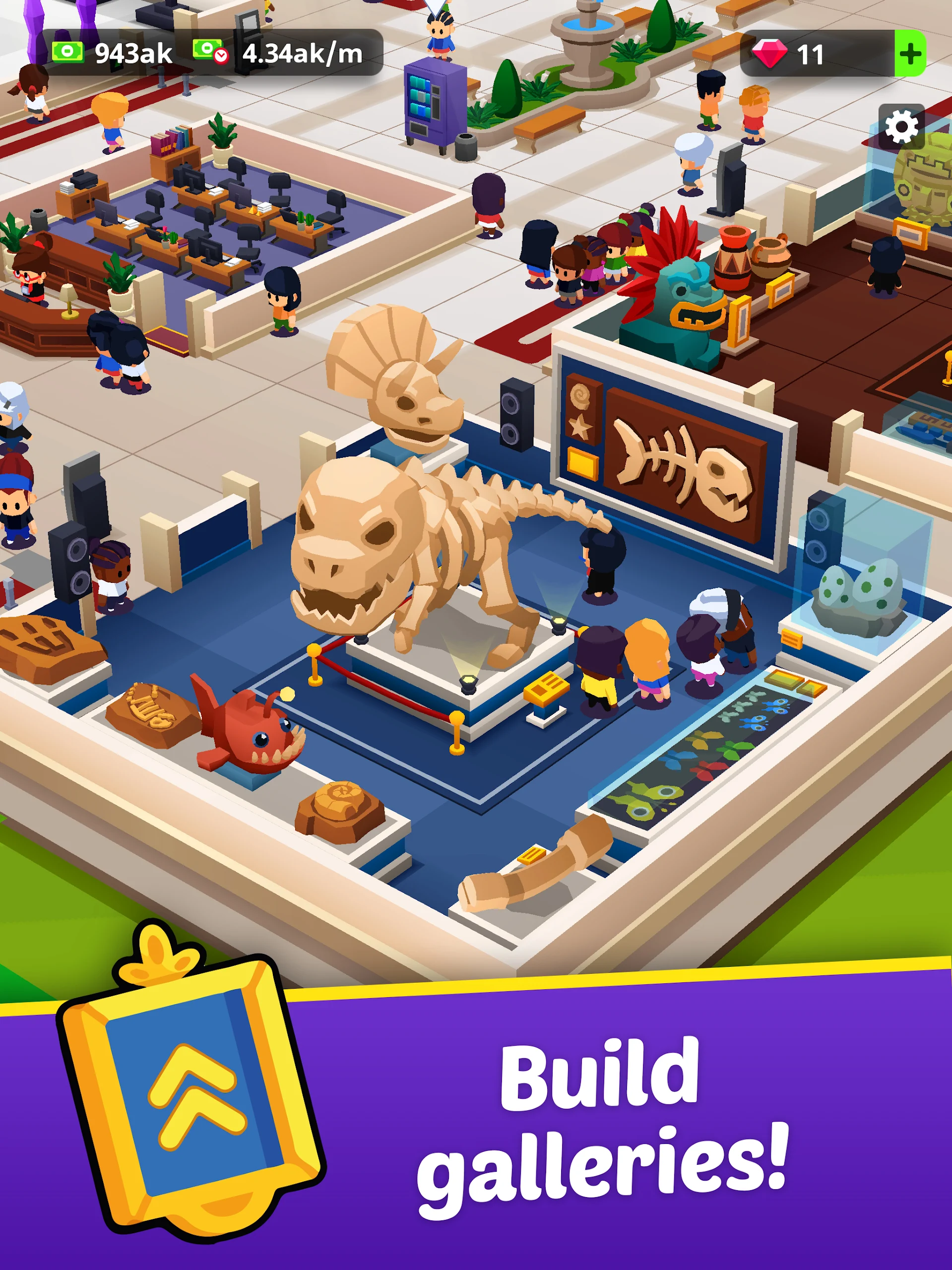 Idle Museum Tycoon: Art Empire transports players to an expansive museum, filled with fascinating discoveries about dinosaurs and significant fossils. This unique building and collection simulation game allows players to evolve into affluent tycoons by constructing distinctive structures, crafting exquisite simulations, and curating remarkable exhibitions. Here, you can unleash your full potential and immerse yourself in a grand world of art and history.
