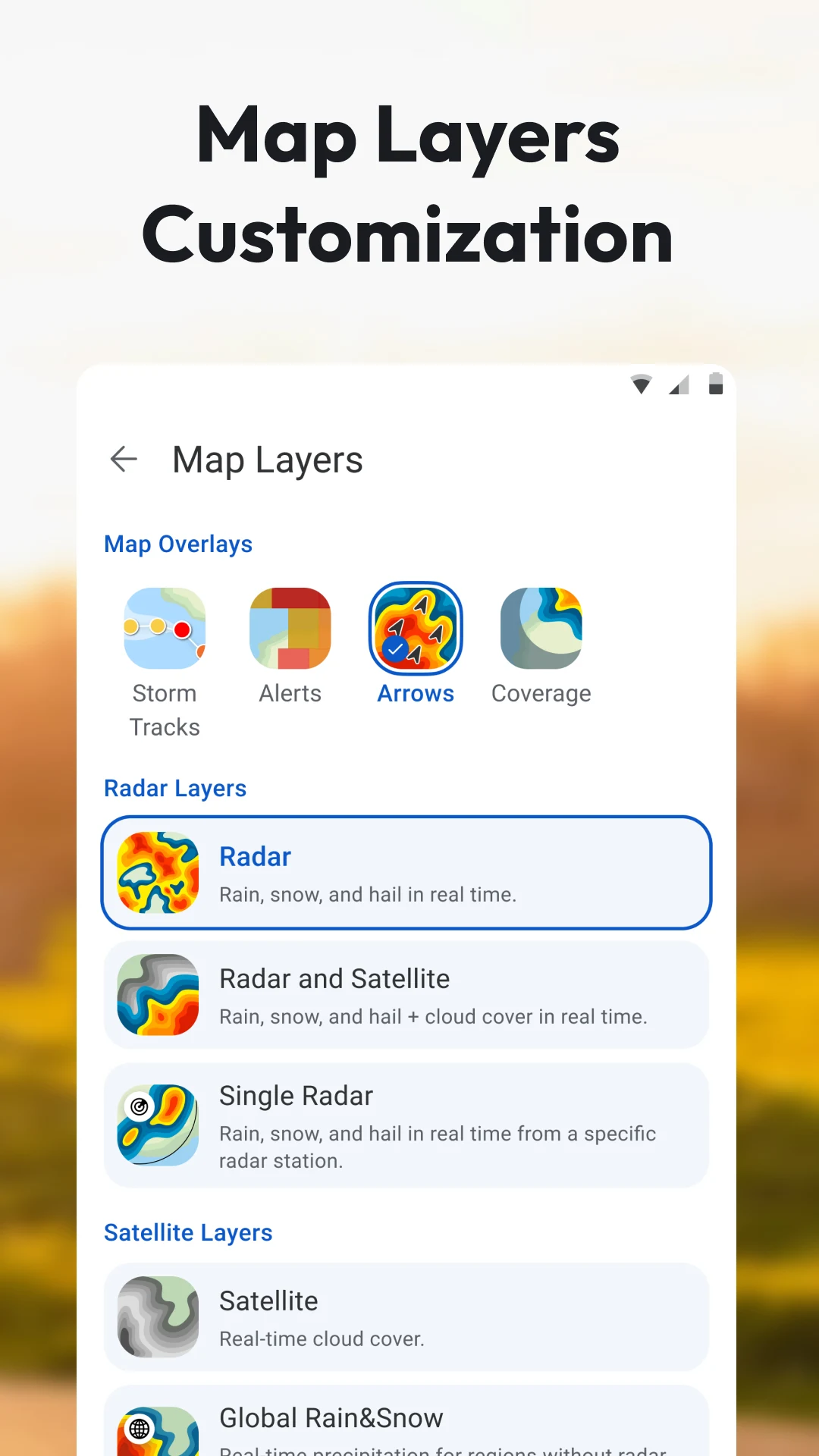 Have you ever found yourself caught in a sudden downpour? With the Weather Radar RainViewer app, those days are behind you! This app notifies you when severe weather is approaching, allowing you to customize alerts for various weather conditions such as rain, thunderstorms, snow, or hurricanes. You'll receive notifications directly on your phone for any unusual weather changes, ensuring you're always prepared for anything. With Weather Radar RainViewer, you'll have a personal weather assistant right at your fingertips.